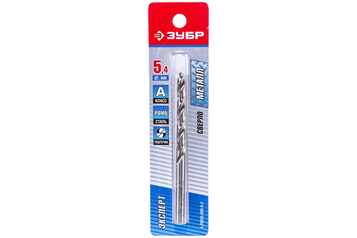 Сверло Зубр 4-29625-093-5.4 «ЭКСПЕРТ» предназначено для выполнения сквозных и глухих отверстий в металлических заготовках из легированной и углеродистой стали с пределом прочности при растяжении до 900 Н/мм2, цветных металлах и других материалах. Сверло изготовлено из высокопроизводительной быстрорежущей стали Р6М5. Угол режущей части 135 градусов, в сочетании с крестообразной подточкой перемычки позволяет работать без предварительного кернения заготовки и обеспечивает высокое качество обработки, а также максимальную производительность. Оснастка имеет цилиндрический хвостовик. Работает в правом направлении. Класс точности сверла А1. Изготовлено в соответствии с требованиями ГОСТ 10902-77.