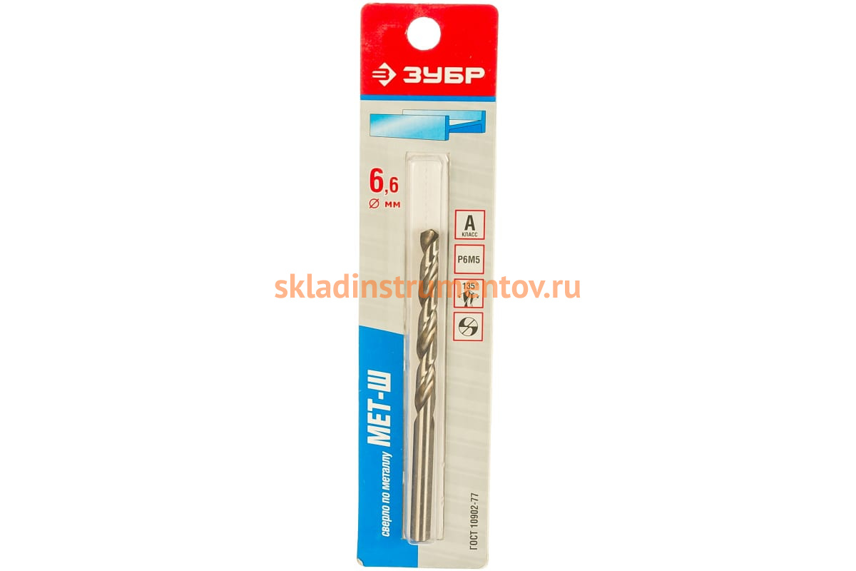 Сверло Зубр 4-29625-101-6.6 «ЭКСПЕРТ» предназначено для выполнения сквозных и глухих отверстий в металлических заготовках из легированной и углеродистой стали с пределом прочности при растяжении до 900 Н/мм2, цветных металлах и других материалах. Сверло изготовлено из высокопроизводительной быстрорежущей стали Р6М5. Угол режущей части 135 градусов, в сочетании с крестообразной подточкой перемычки позволяет работать без предварительного кернения заготовки и обеспечивает высокое качество обработки, а также максимальную производительность. Оснастка имеет цилиндрический хвостовик. Работает в правом направлении. Класс точности сверла А1. Изготовлено в соответствии с требованиями ГОСТ 10902-77.