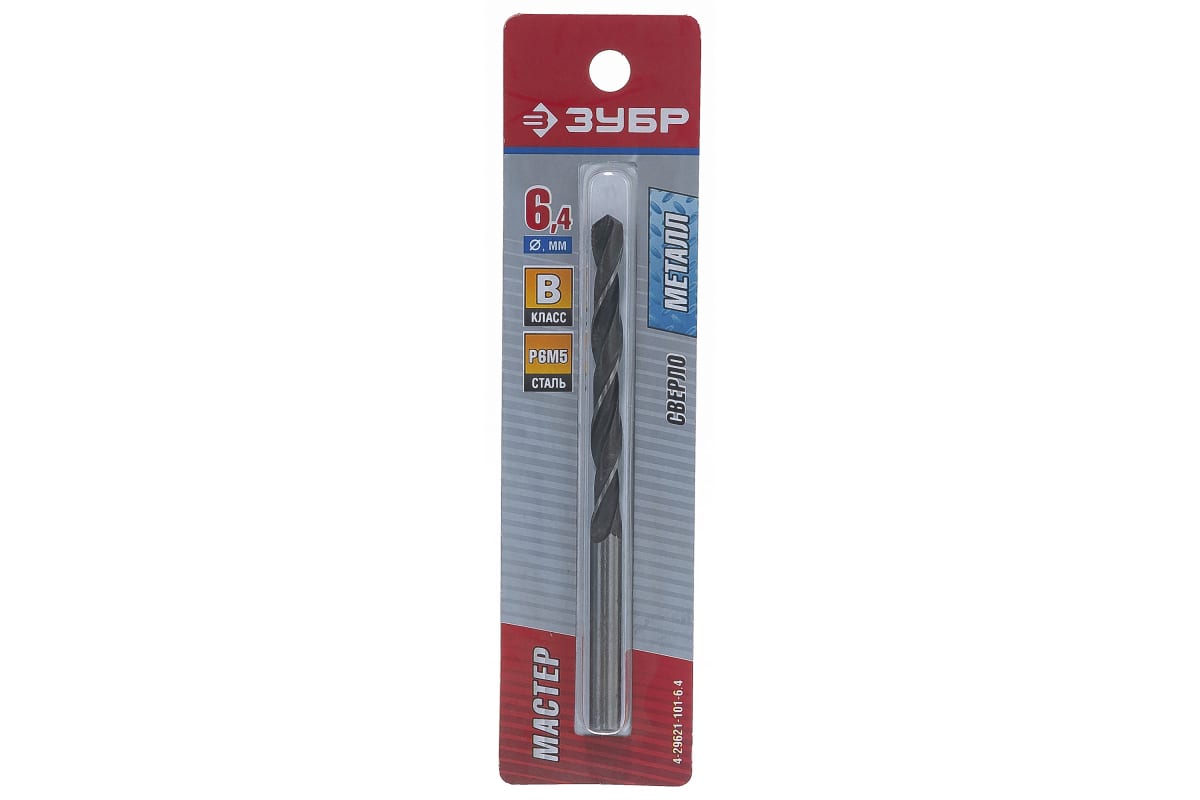 Сверло Зубр 4-29621-101-6.4 «МАСТЕР» предназначено для выполнения сквозных и глухих отверстий в металлических заготовках из легированной и углеродистой стали с пределом прочности при растяжении до 900 Н/мм2, цветных металлах и других материалах. Сверло изготовлено из высокопроизводительной, быстрорежущей стали Р6М5. Угол режущей части 118 градусов. Оснастка имеет цилиндрический хвостовик. Работает в правом направлении. Класс точности сверла В1. Изготовлено в соответствии с требованиями ГОСТ 10902-77.