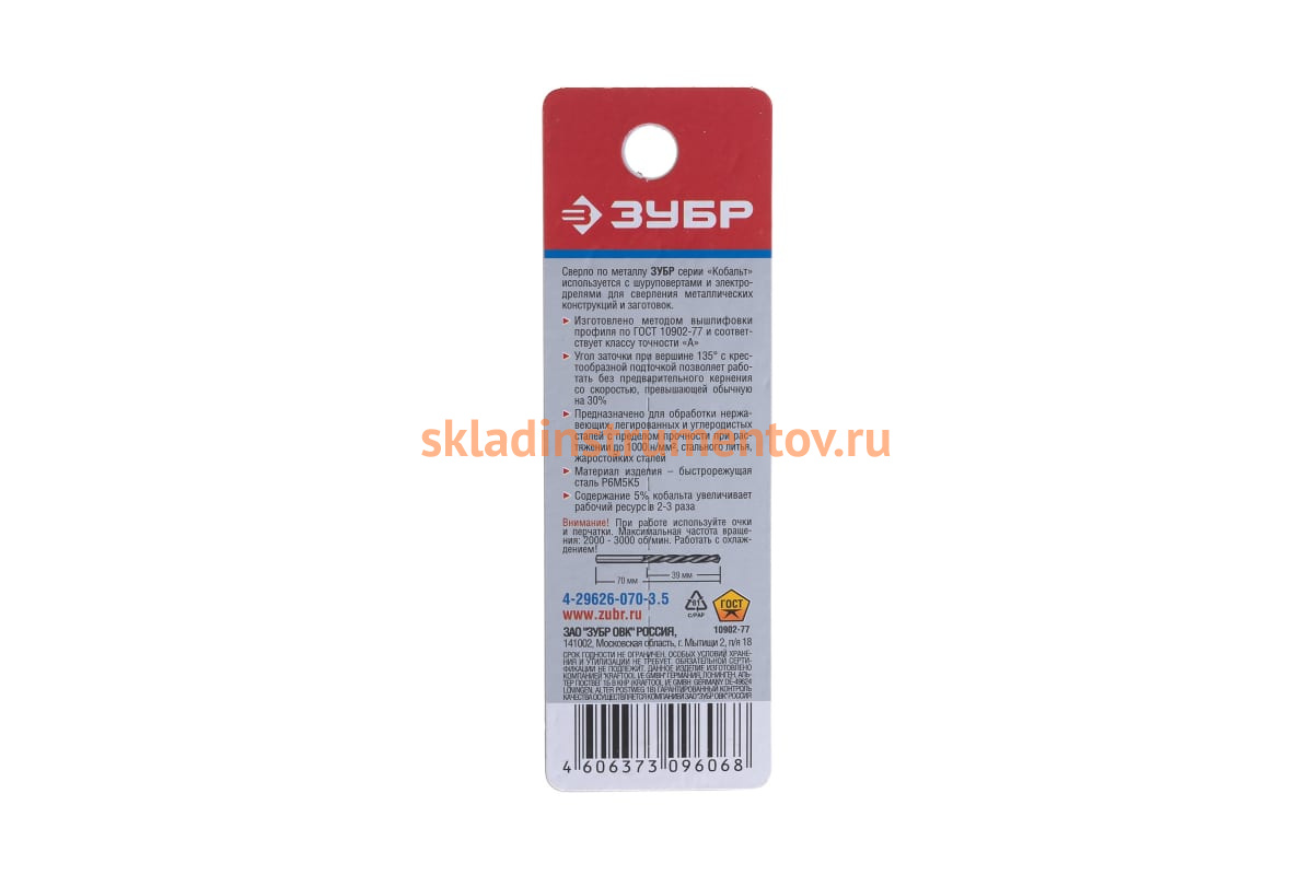 Сверло Зубр 4-29626-070-3.5 изготовлено из быстрорежущей стали с добавлением 5% кобальта (Р6М5К5), что обуславливает высокую прочность и долгий срок службы оснастки. Сверло шлифованное и имеет цилиндрический хвостовик. Подходит для сверления труднообрабатываемых и нержавеющих сталей, цветных металлов. Угол заточки при вершине — 135 градусов, а класс точности — А1.