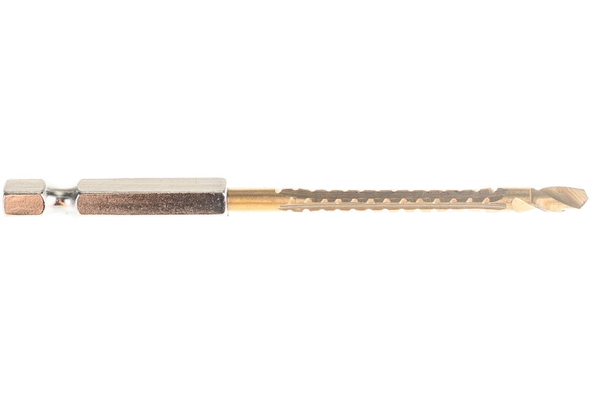 Сверло-фреза универсальное HAGWERT 572200 предназначено для сверления отверстий в листовых материалах из металла, пластмассы, древесины, фанеры. Изготовлено из быстрорежущей стали P6M5/HSS-TIN и имеет титановое напыление, что обеспечивает повышенную стойкость режущих кромок.