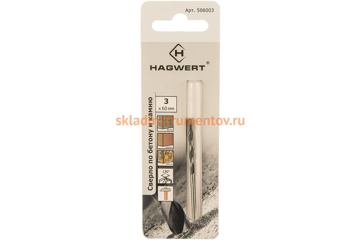 Сверло HAGWERT 506003 используется с ударными дрелями и перфораторами со сверлильным патроном. Применяется для сверления отверстий в бетоне, кирпичной кладке, силикатном кирпиче, природном и искусственном камне. Оснастка имеет цилиндрический хвостовик. С помощью сверла достигается точное сверление отверстий за минимальное время.