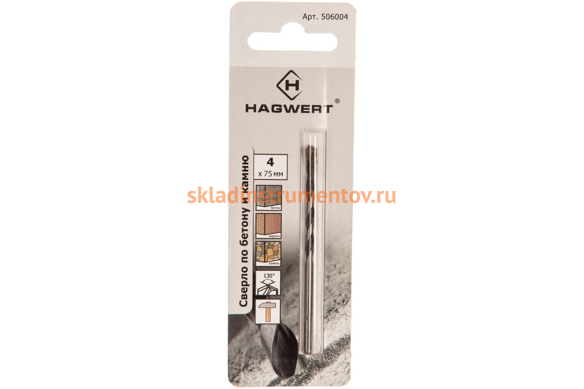 Сверло HAGWERT 506004 используется с ударными дрелями и перфораторами со сверлильным патроном. Применяется для сверления отверстий в бетоне, кирпичной кладке, силикатном кирпиче, природном и искусственном камне. Оснастка имеет цилиндрический хвостовик. С помощью сверла достигается точное сверление отверстий за минимальное время.