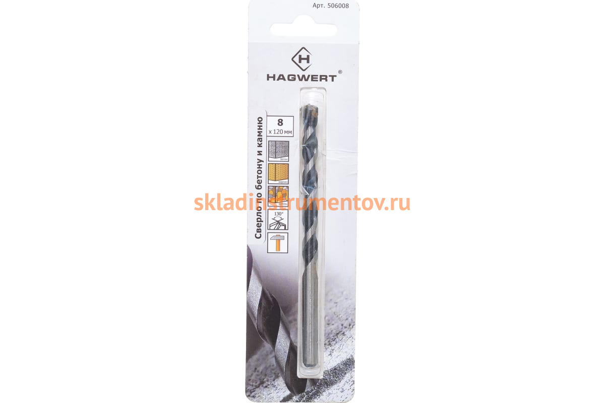 Сверло HAGWERT 506008 используется с ударными дрелями и перфораторами со сверлильным патроном. Применяется для сверления отверстий в бетоне, кирпичной кладке, силикатном кирпиче, природном и искусственном камне. Оснастка имеет цилиндрический хвостовик. С помощью сверла достигается точное сверление отверстий за минимальное время.