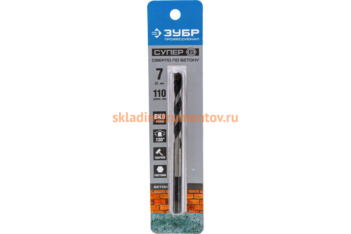 Сверло Зубр 2916-110-07 серии "Супер-6" используется совместно с ударными дрелями для сверления конструкций из бетона, кирпича, камня, плотных известняков. Имеет твердосплавный наконечник марки ВК8. Использование данного сплава позволяет существенно повысить скорость обработки и рабочий ресурс сверла. П-образная форма спирали обеспечивает эффективный и быстрый отвод сверлильной пыли из зоны обработки. Угол заточки при вершине 130 о. Шестигранный хвостовик способствует надежному закреплению сверла в патроне. Сверло изготовлено из высокопрочной стали, имеет хорошую износостойкость.