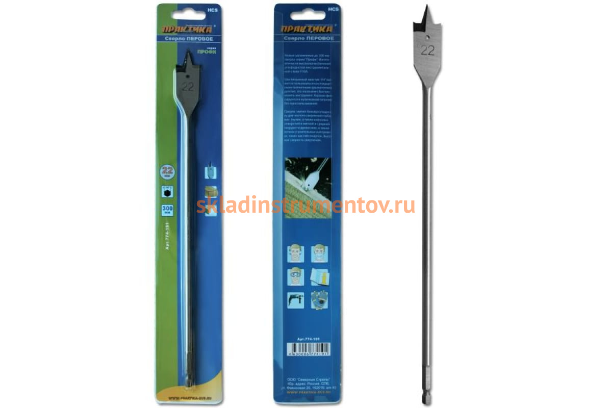 —Сверло перовое по дереву (22х300 мм) ПРАКТИКА 774-191—
