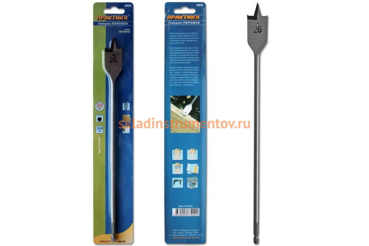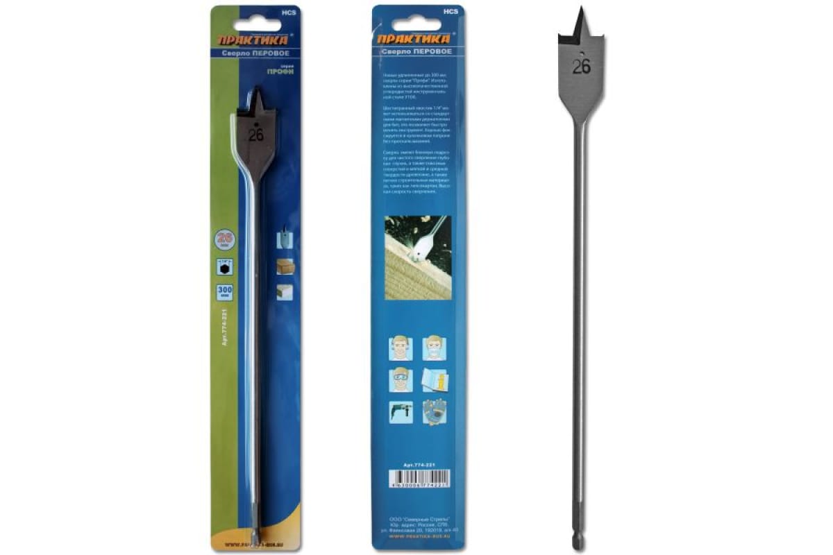 Сверло перовое по дереву (26х300 мм) ПРАКТИКА 774-221