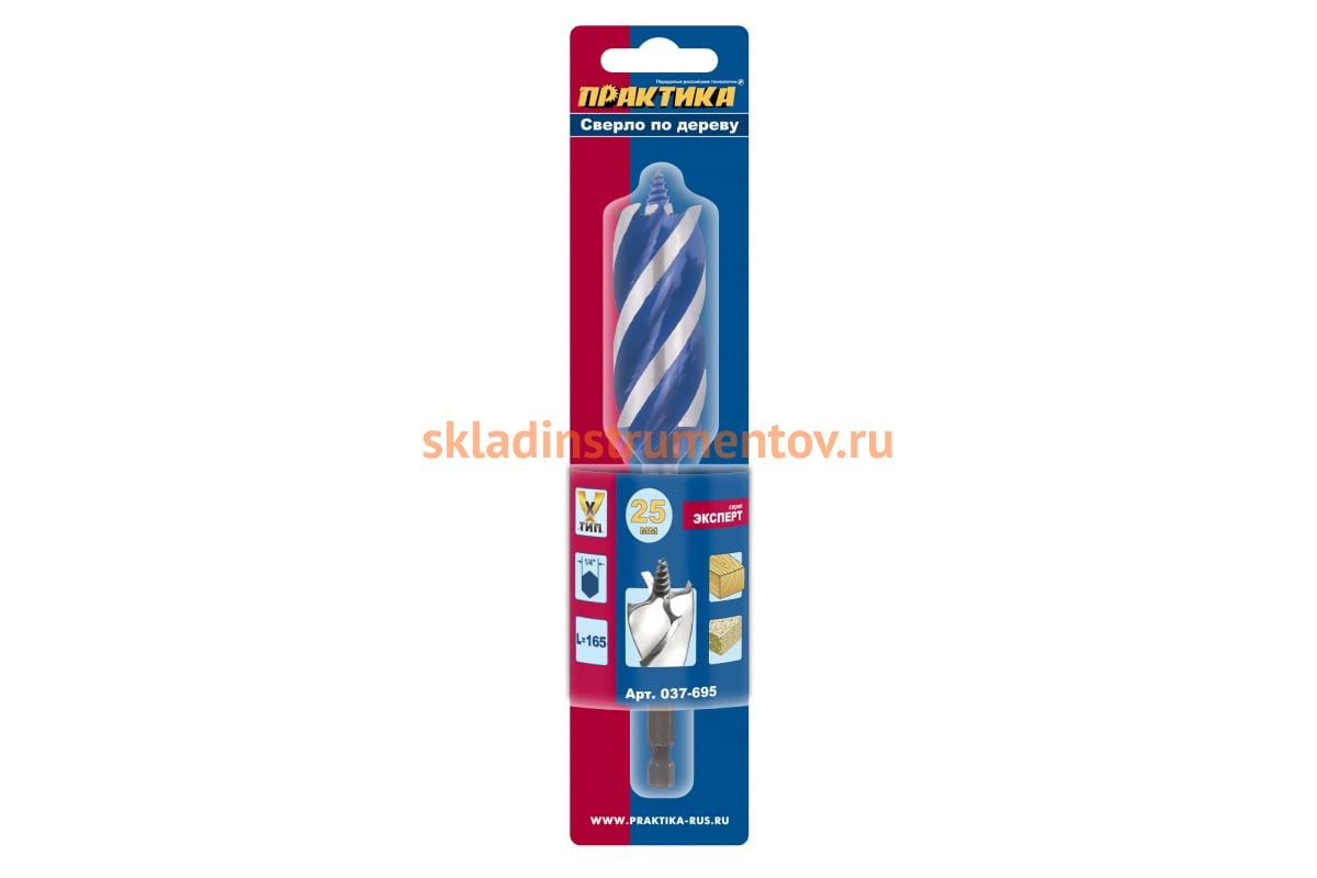—Сверло 4-х заходное по дереву (25х165 мм) ПРАКТИКА 037-695—