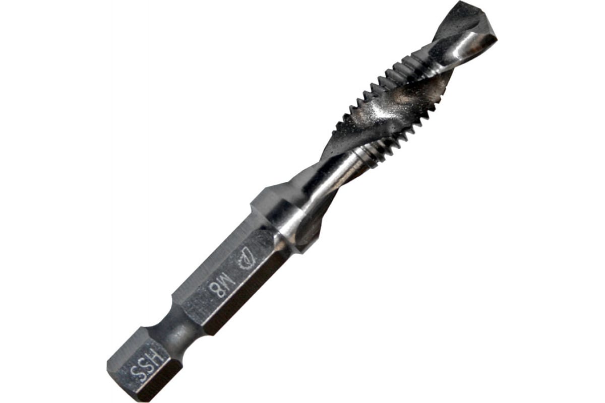 Сверло-метчик ПРАКТИКА 775-006 предназначено для сверления отверстия и нарезания резьбы с помощью дрели. Для обработки листовых материалов и профилей из легированных и не легированных сталей с пределом прочности на растяжение до 900 Н/мм2 , а также цветных металлов. Выполнено из быстрорежущей стали Р6М5, шлифованное, хвостовик 1/4’’. Сверление, нарезание резьбы и зенковка производится за один рабочий проход, очистка резьбы - на обратном ходу. Резьба метрическая DIN ISO 13, правосторонняя. Допуск ISO 2 / 6Н. Боковая поверхность - затыловочная шлифовка. Не для глухих отверстий.