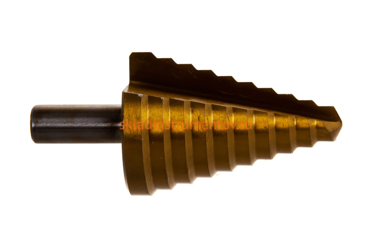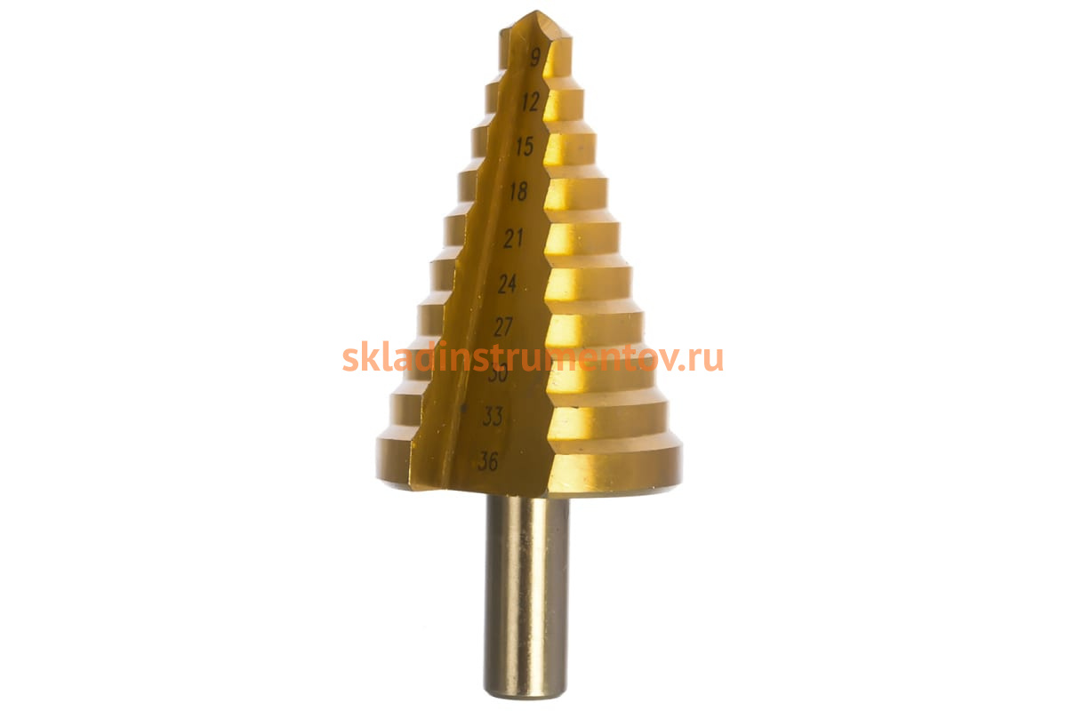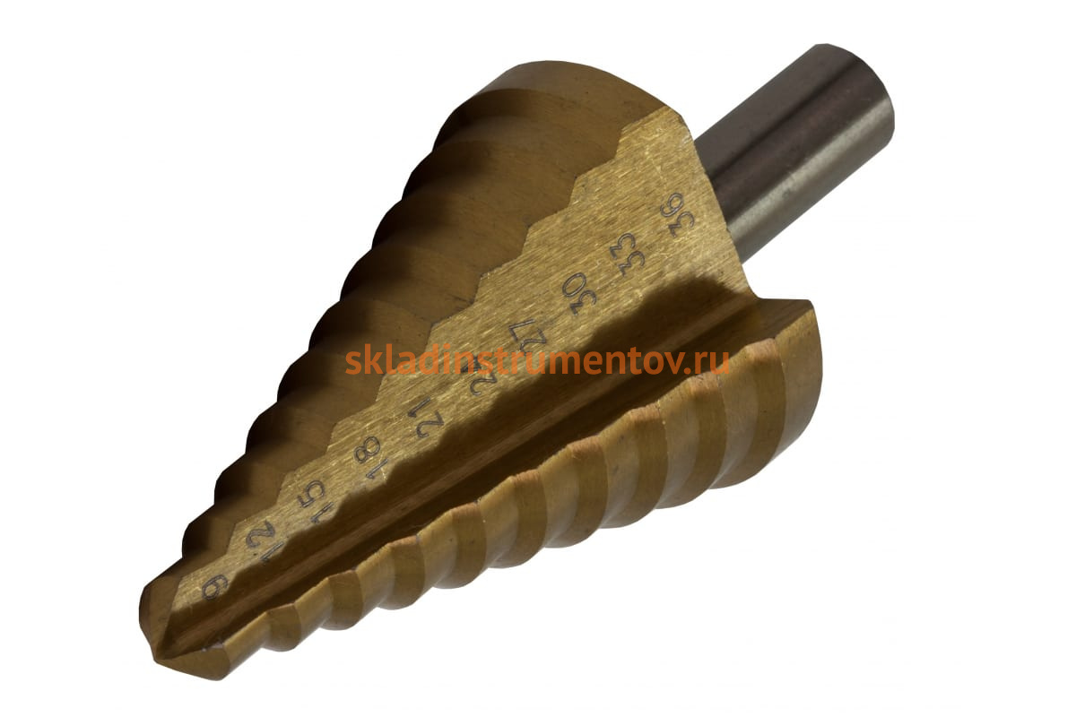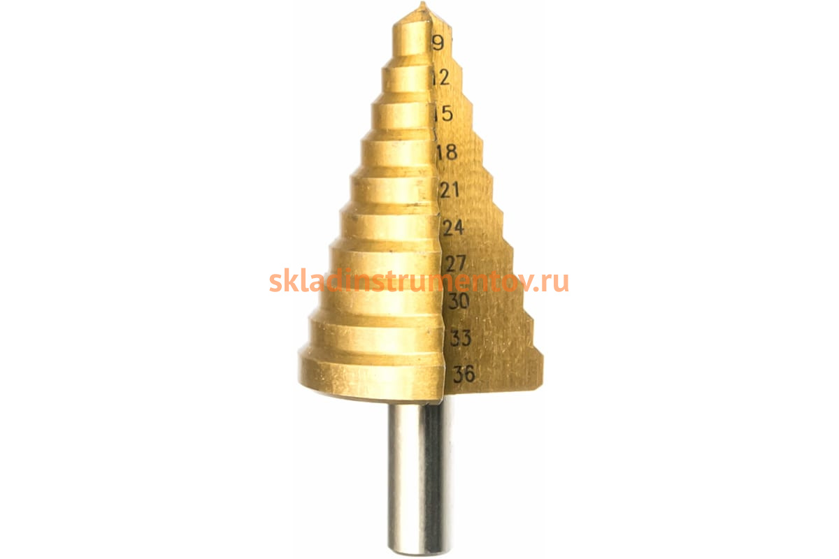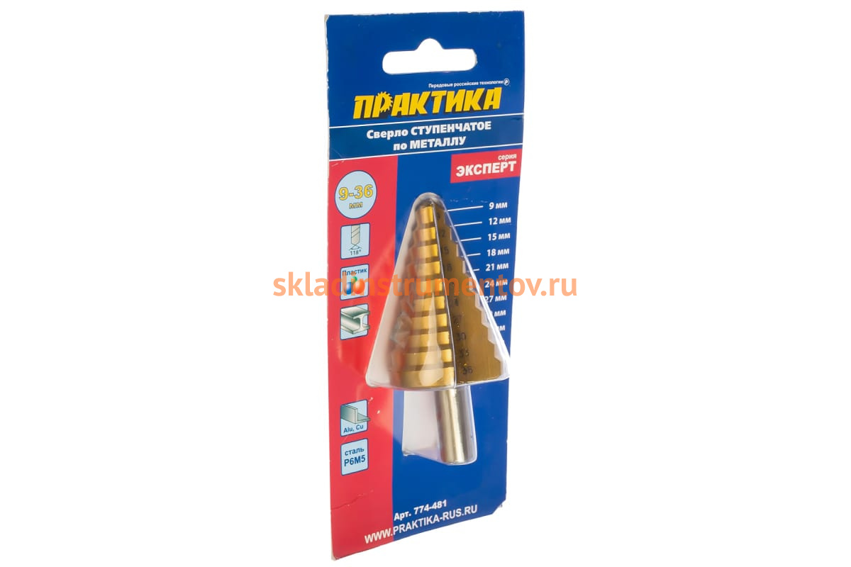 Сверло ступенчатое (9-36 мм) ПРАКТИКА 774-481 изготовлено из высококачественной быстрорежущей стали Р6М5 и предназначено для получения отверстий в листовых металлических и пластиковых материалах. Покрытие нитридом титана значительно увеличивает сопротивление перегреву во время сверления и срок службы сверла.