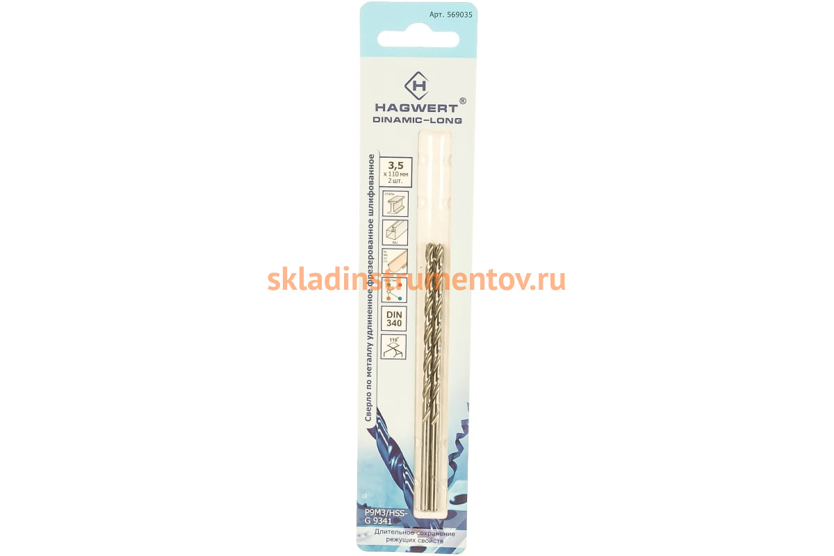 Сверло Dinamic-Long HAGWERT 569035 применяется для сверления отверстий в металлических заготовках и изделиях из пластика. Изготовлено из быстрорежущей стали Р9М3, прочное, устойчивое к излому и имеет высокую производительность. Конструкция сверла обеспечивает сохранность структуры заготовки во время сверления. Соответствует требованиям ГОСТ 886-77. В комплекте 2 сверла.
