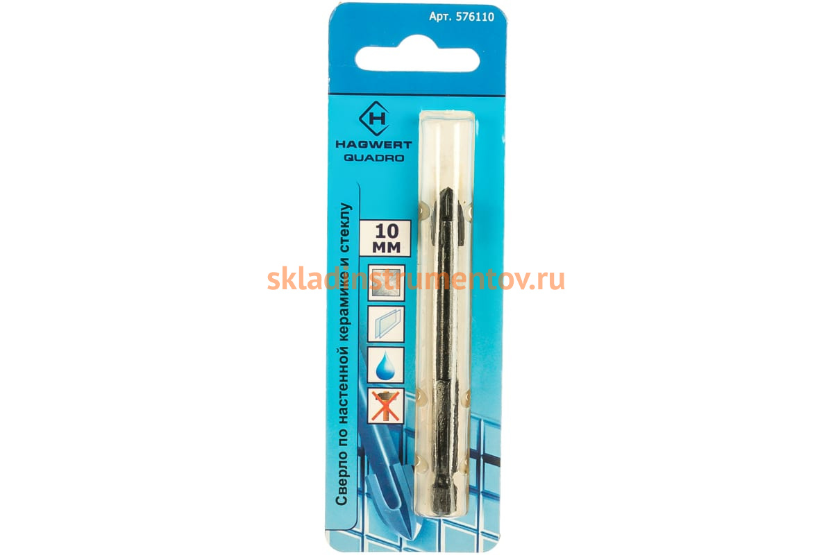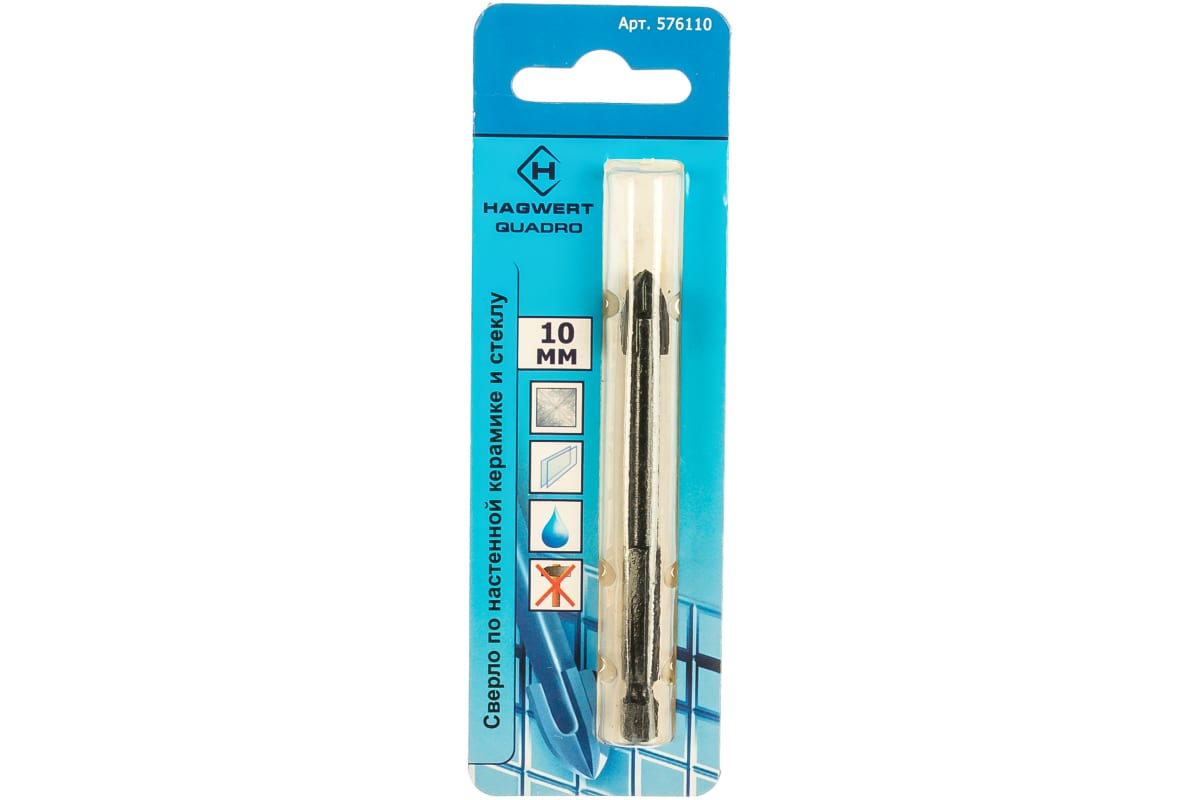 Сверло Quadro HAGWERT 576110 применяется для сверления отверстий в керамической плитке 1-4 класса твёрдости, керамограните, стекле. Твердосплавная напайка изготовлена из карбид-вольфрамового сплава. Количество граней — 4. Сверление следует проводить на низких скоростях с достаточным охлаждением сверла и места сверления.