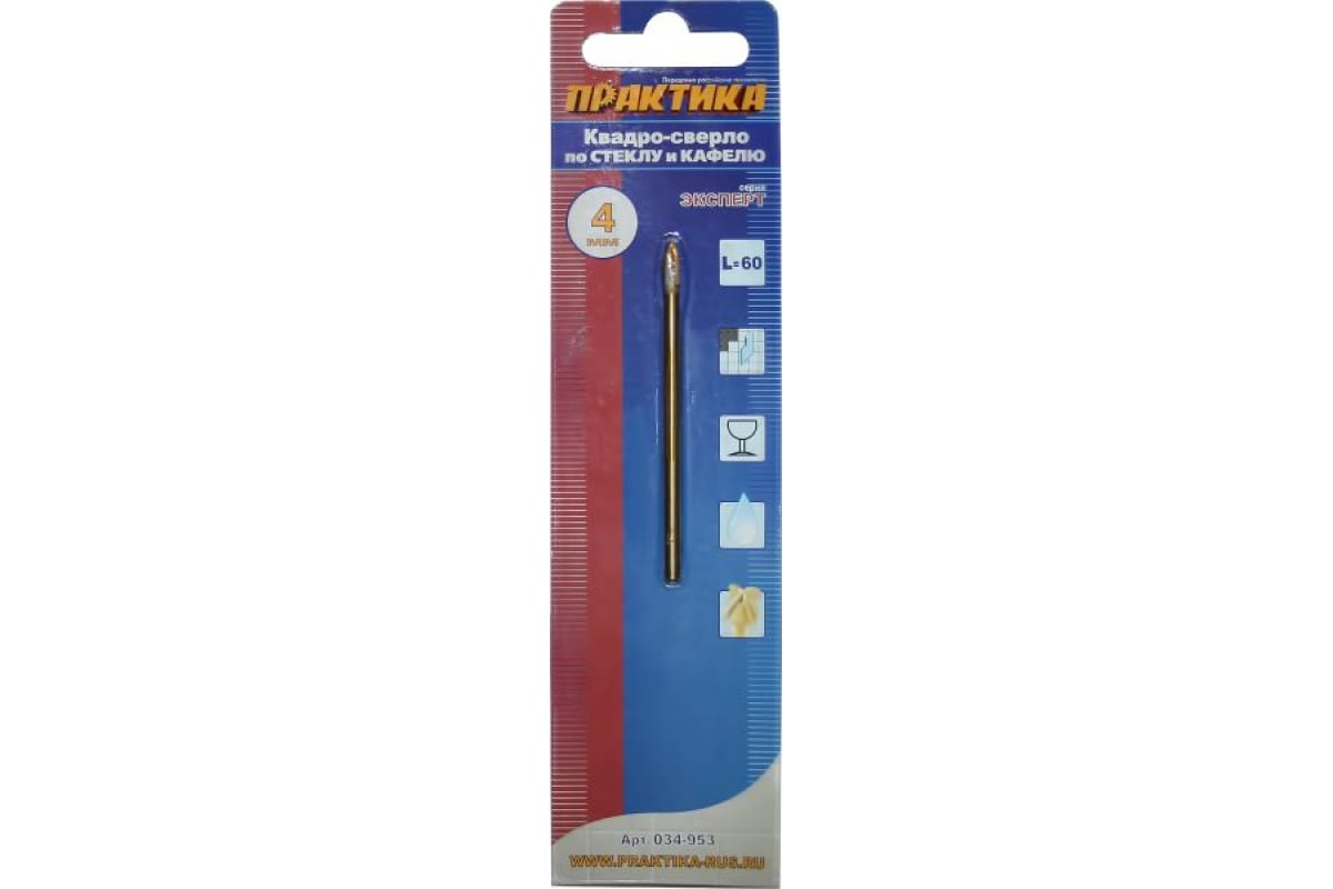 —Сверло по стеклу Квадро (4 мм) ПРАКТИКА 034-953