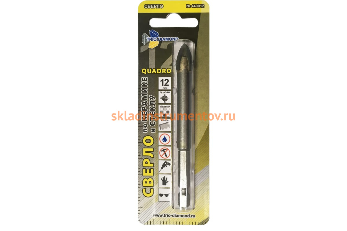 Сверло квадро TRIO-DIAMOND 440012 предназначено для дрелей. Применяется для выполнения отверстий в керамической плитке и стекле. Имеет твердосплавную напайку. Сверло отличается наличием четырех режущих кромок. Сверление следует проводить на низких скоростях, в безударном режиме, с достаточным охлаждением сверла и места сверления.