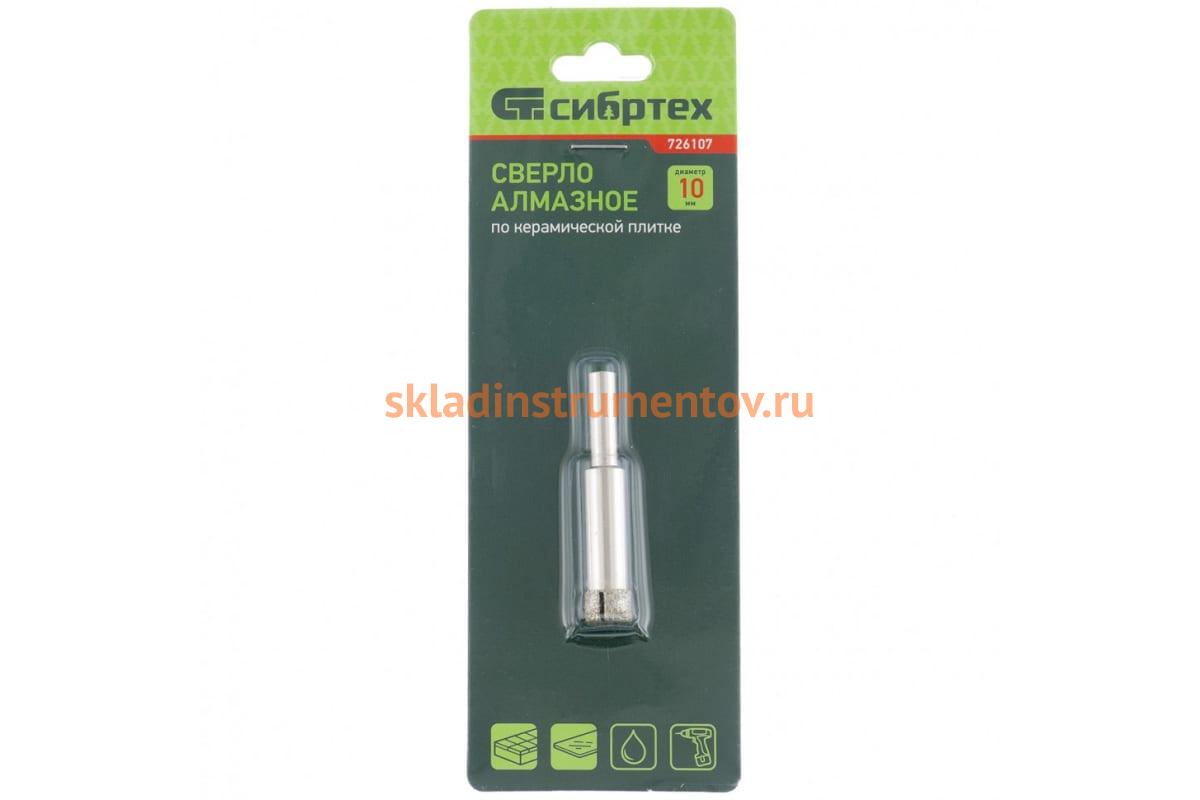 Сверло по стеклу и керамической плитке (10х50 мм) СИБРТЕХ 726107