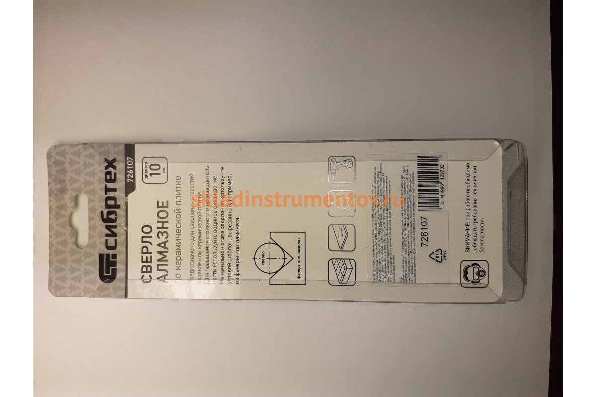 —Сверло по стеклу и керамической плитке (10х50 мм) СИБРТЕХ 726107