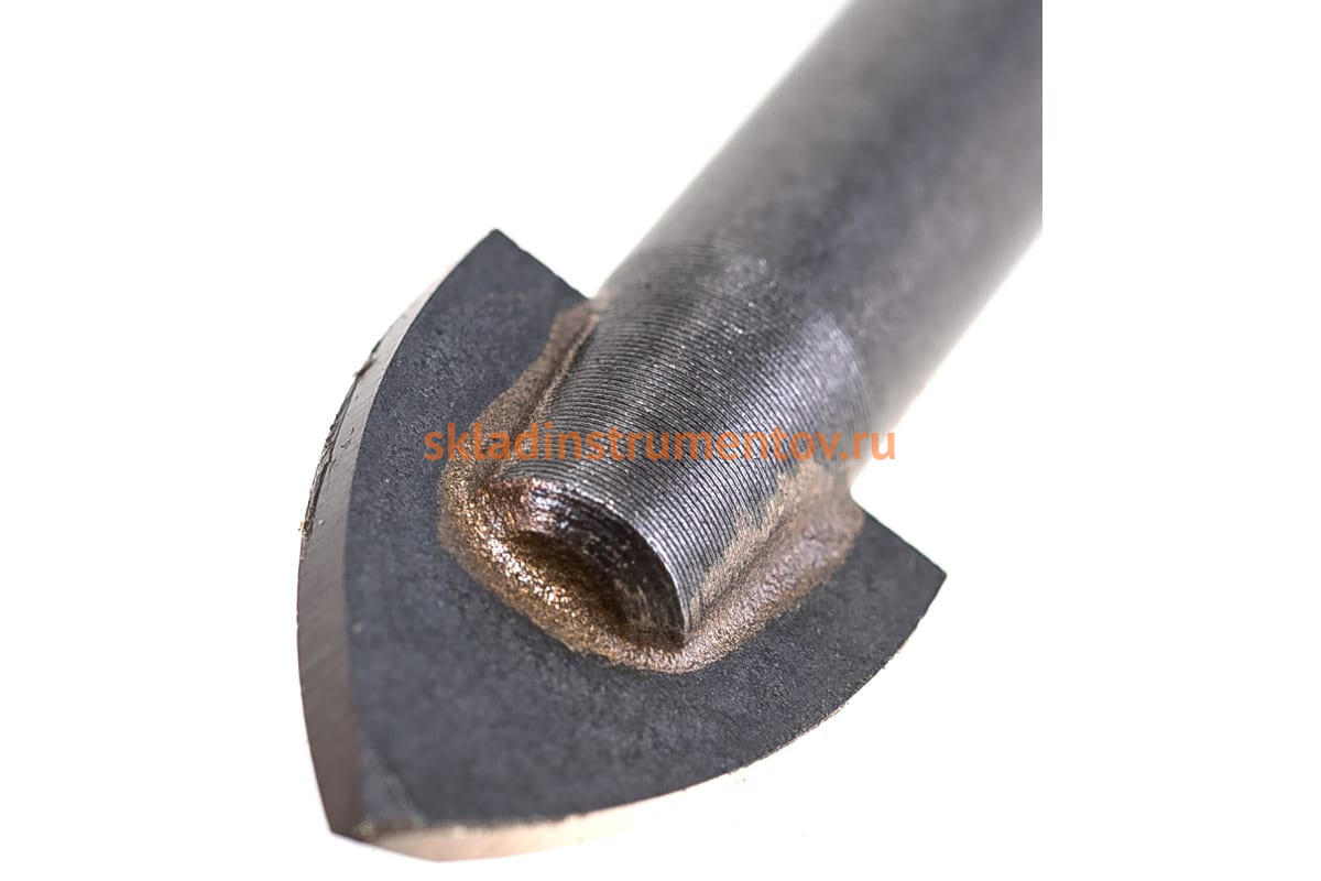 Твердосплавная напайка изготовлена из карбид-вольфрамового сплава. Количество граней — 2. Сверление следует проводить на низких скоростях с достаточным охлаждением сверла и места сверления.