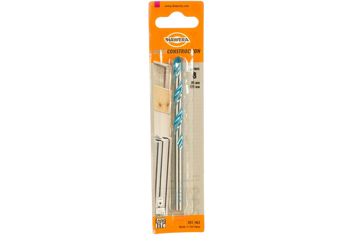 Сверло Multi Construction HAWERA F00Y202063 применяется совместно с дрелями и дрелями-шуруповертами. Используется для сверления сквозных и глухих отверстий в керамической плитке, керамике со склерометрической твердостью до 8, шифере, кирпиче, пластике, бетоне, древесине, цветных металлах и стали. При сверлении керамической плитки рекомендуется понизить частоту вращения до 400-600 об/мин. Стержень сверла изготовлен из легированной стали. Твердосплавная пластина закреплена методом высокотемпературной пайки. Сверло имеет глубокую спираль, цилиндрический хвостовик. Высокую производительность и длительный срок службы.