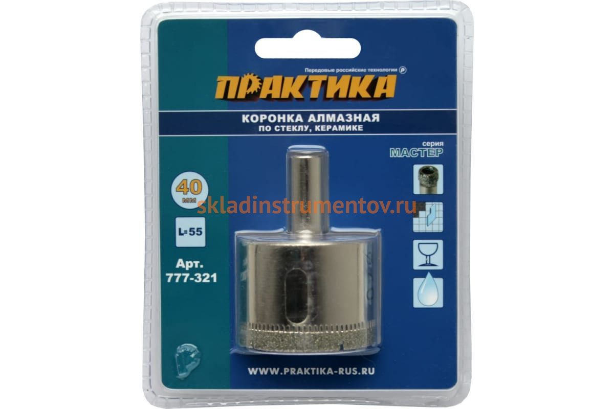 —Коронка алмазная по стеклу и керамике (40 мм) ПРАКТИКА 777-321