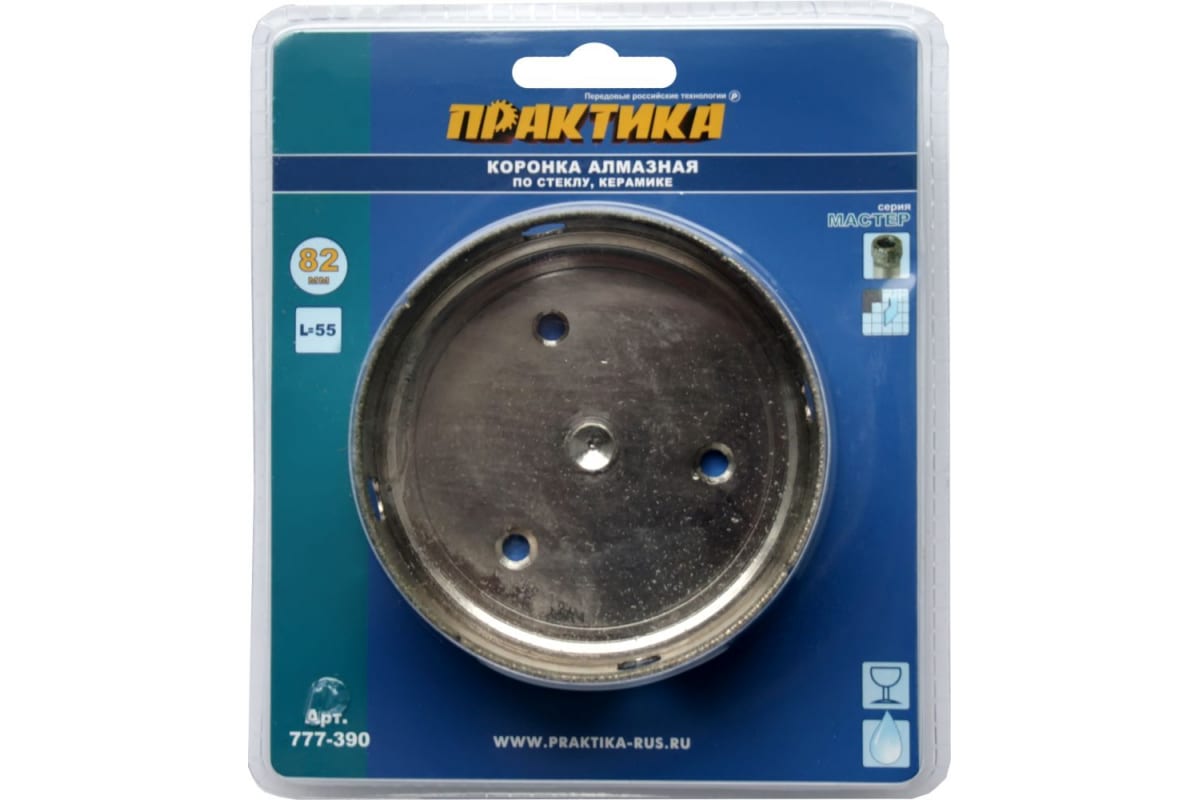—Коронка алмазная по стеклу и керамике (82 мм) ПРАКТИКА 777-390—