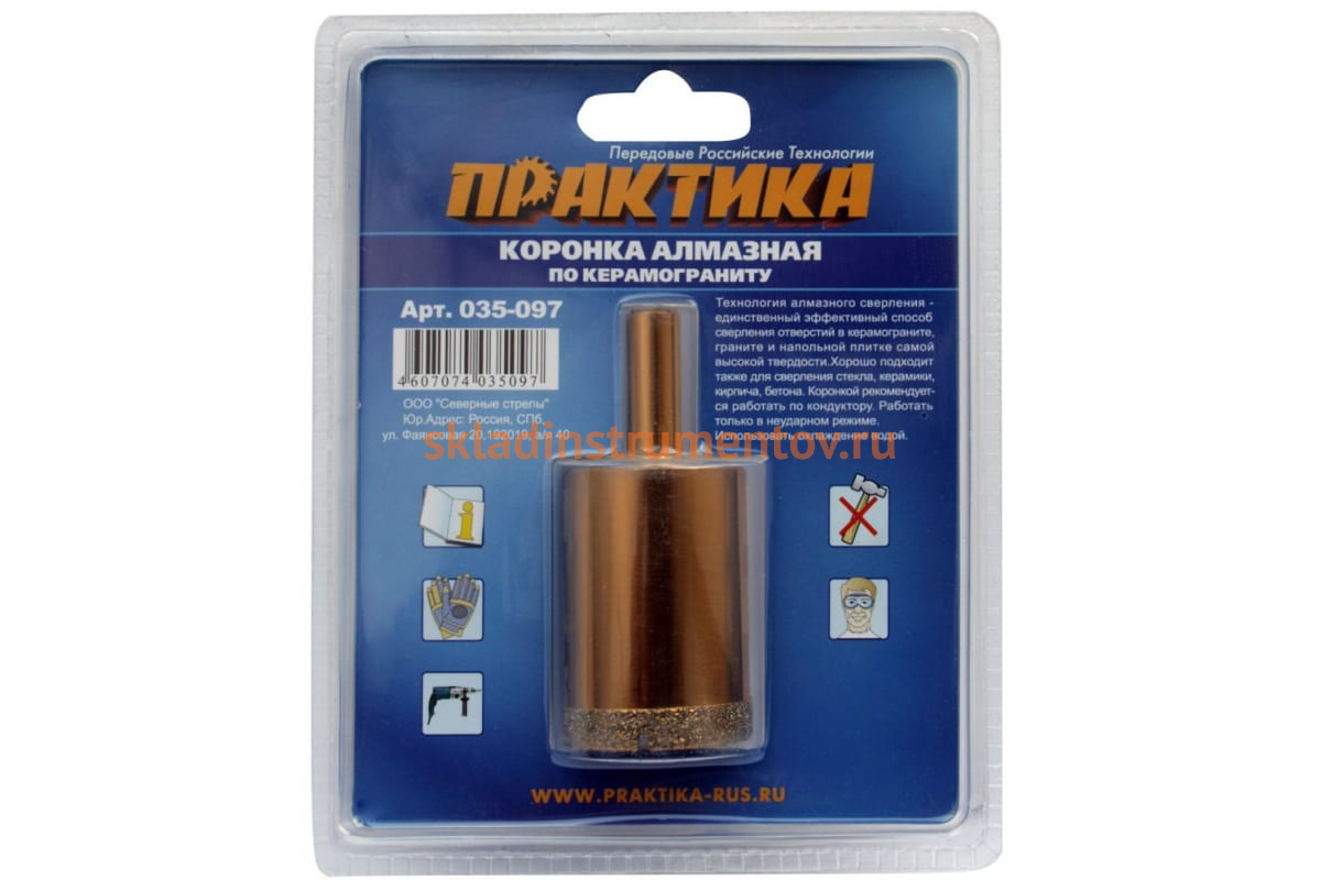 —Коронка алмазная по керамограниту (35 мм) ПРАКТИКА 035-097