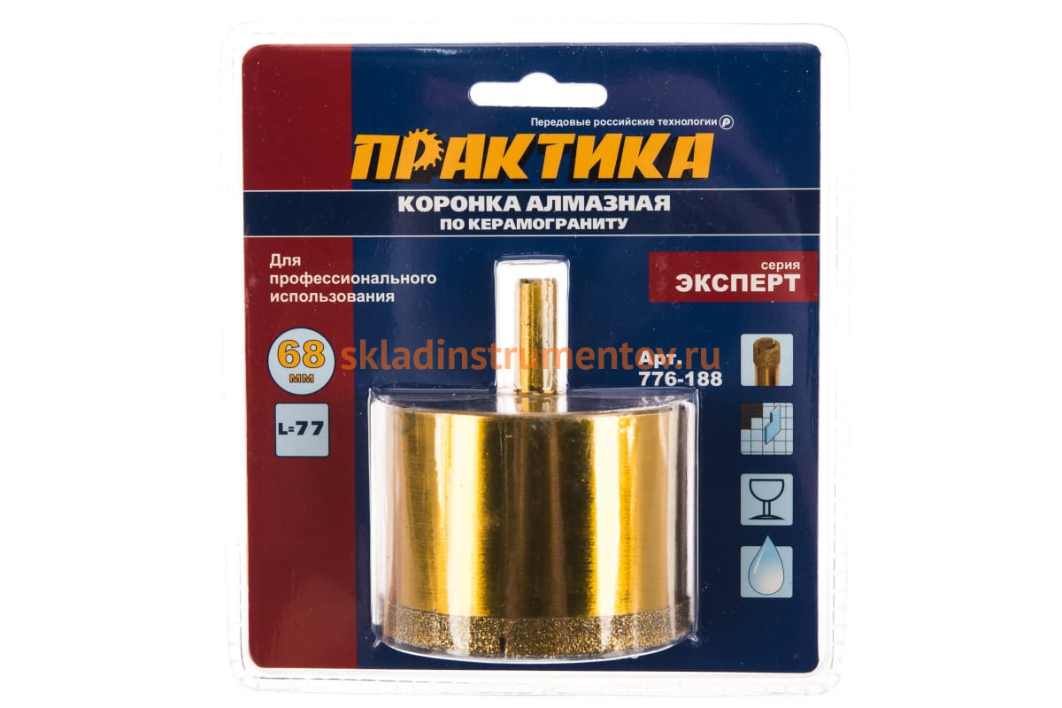 —Коронка алмазная по керамограниту (68 мм) ПРАКТИКА 776-188