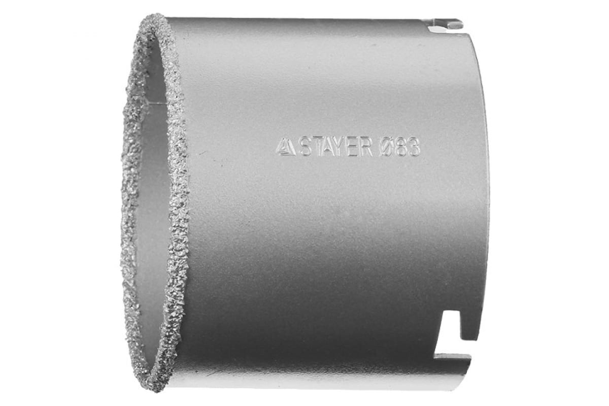 Коронка кольцевая с карбидно-вольфрамовой крошкой (67 мм) "PROFESSIONAL" STAYER 33345-67 применяется для получения отверстий в облицовочных материалах, ячеистом бетоне, кирпиче и гипсокартоне. Коронка оснащена равномерно нанесенной твердосплавной режущей кромкой, благодаря которой предотвращается появление трещин и сколов при сверлении.