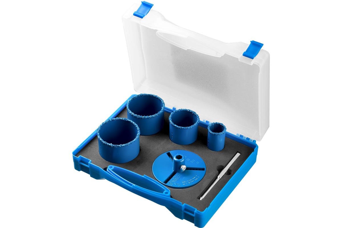 Набор кольцевых коронок ЗУБР 33350-H6_z01 используется для сверления в облицовочных материалах, ячеистом бетоне, гипсокартоне. Коронки изготовлены из качественной углеродистой стали. Автоматическое нанесение карбид-вольфрамовой крошки повышает ресурс инструмента. Применяется на дрелях и легких перфораторах в режиме безударного сверления.