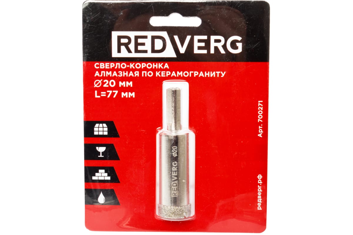 Сверло-коронка алмазная по керамограниту REDVERG 6627088 предназначена для дрелей и легких перфораторов. Применяется для мокрого сверления в безударном режиме керамогранита, облицовочной и напольной плитки, стекла. Допустимо использование для сверления кирпича и бетона.
