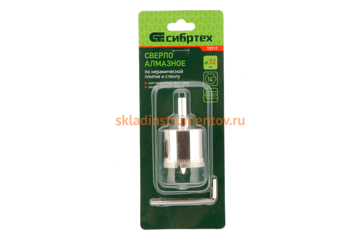 Сверло СИБРТЕХ 72717 предназначено для сверления отверстий в керамической плитке и стекле с применением водяного охлаждения.