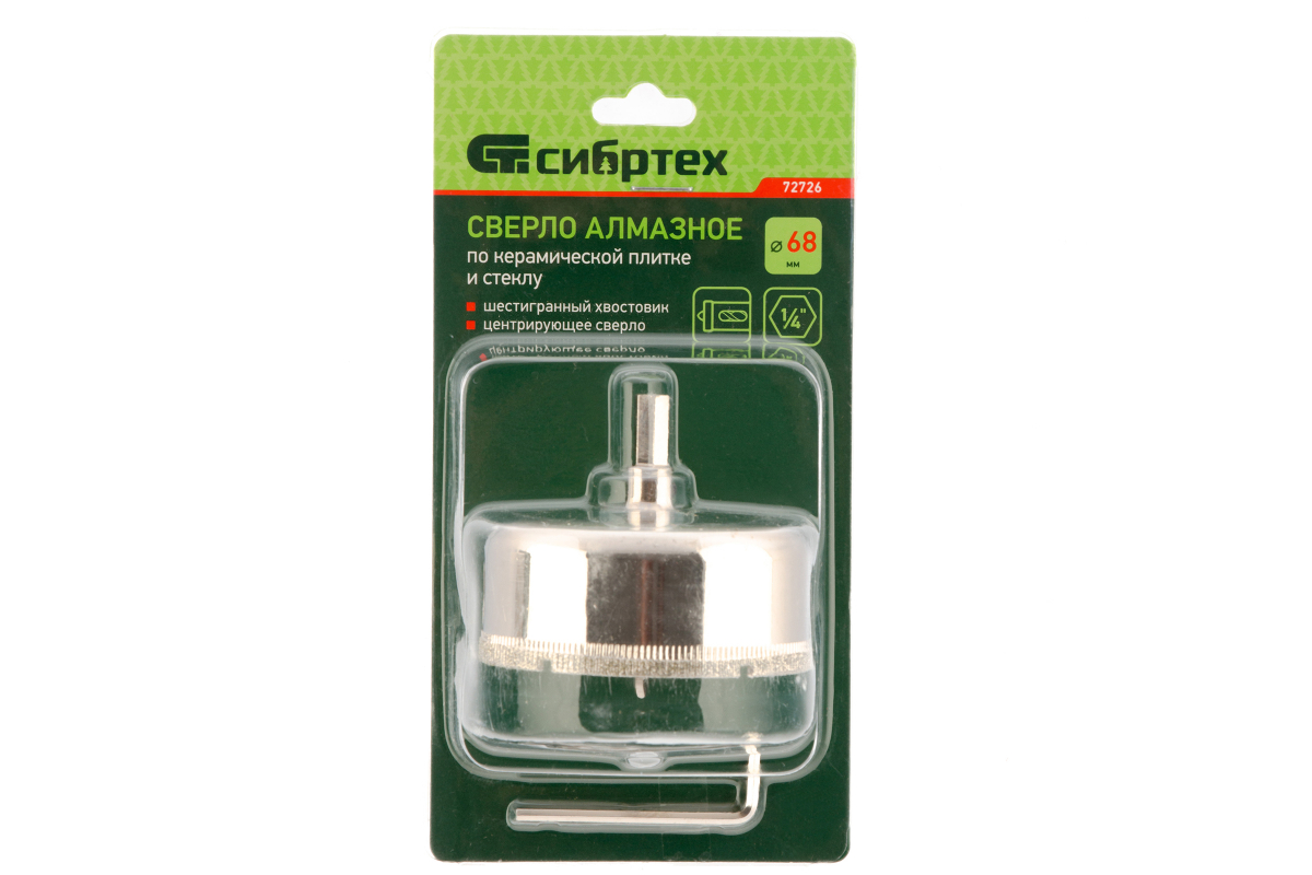 Сверло СИБРТЕХ 72726 предназначено для сверления отверстий в керамической плитке и стекле с применением водяного охлаждения.
