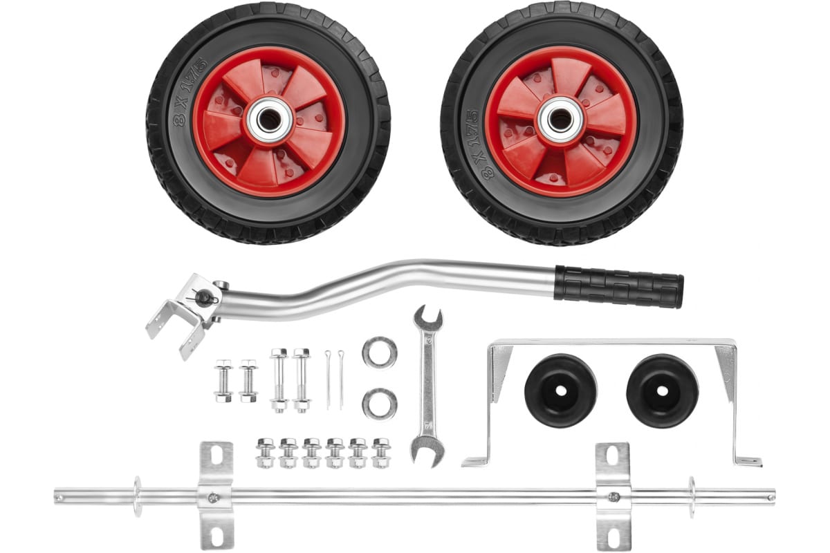Набор Зубр ЗЭСБ-РК-1 предназначен для генераторов Зубр ЗЭСБ-2200, ЗЭСБ-2500, ЗЭСБ-2800 (Э), ЗЭСБ-3500 (Э/ЭМ2), ЗЭСГ-2200-М2, ЗЭСГ-3500-М2. Применяется для установки на генераторы в целях облегчения их транспортирования. Обеспечивает удобный хват и легкое движение в любом необходимом направлении.