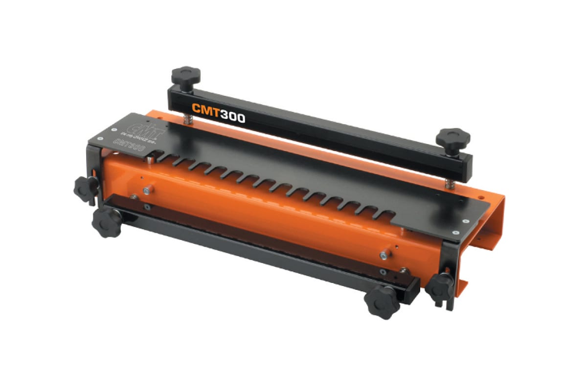 Приспособление CMT CMT300 применяется для изготовления шипорезного соединения. Для нарезания шипов необходимо прижать заготовку к предустановленным стопорам, установить необходимый вылет фрезы и приступать к фрезерованию. Приспособление изготовлено из стали.