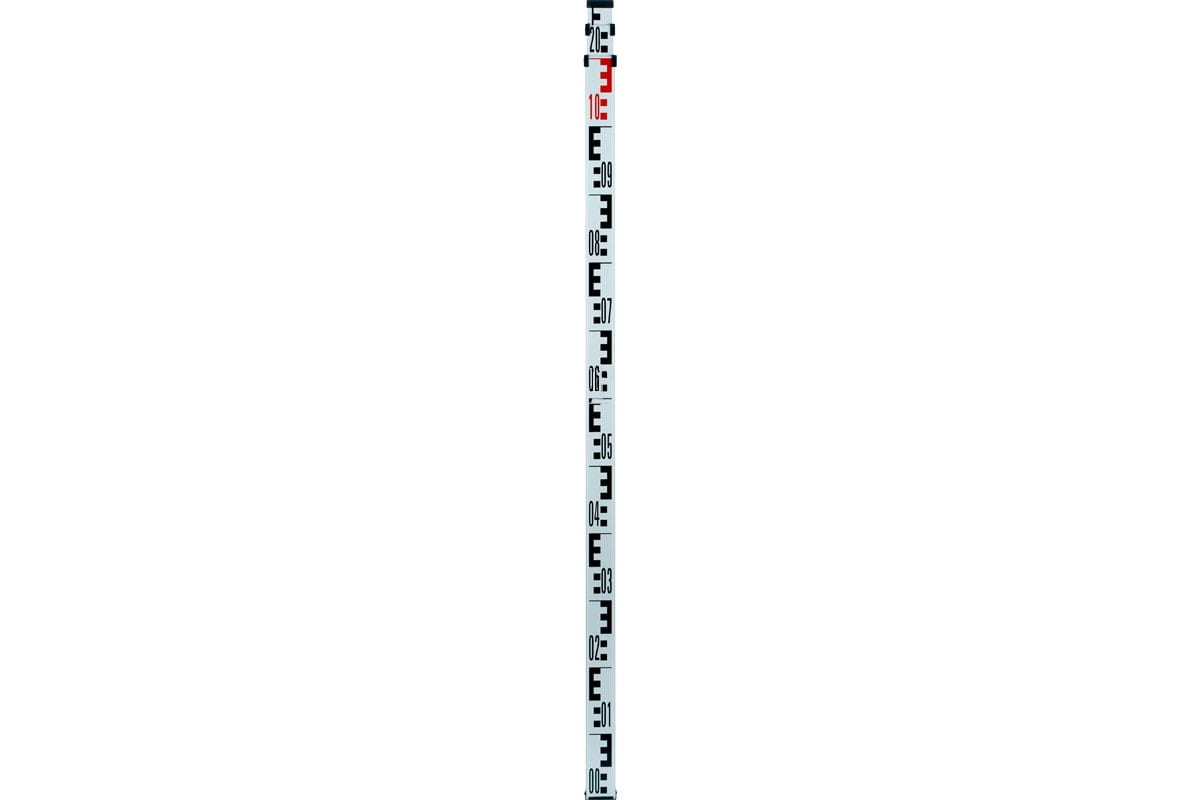 Нивелирная телескопическая рейка ADA STAFF 3 изготовлена из алюминиевого сплава. Профиль оснащен ребрами жесткости, что придает данной рейке дополнительную прочность. Кнопка для фиксации секций рейки металлизированная, стойкая к морозу и служит долгое время. Данная телескопическая рейка на оборотной стороне имеет три секции, на каждой из которых нанесена миллиметровая шкала снизу до верху. На лицевой стороне расположена шкала «Е», которая обозначена черно/красным цветом. Есть возможность устанавливать пузырьковый уровень на пластиковую окантовку в верхний части секции (с креплением типа «уголок») или на профиль рейки (защелкивающийся пластиковый уровень).