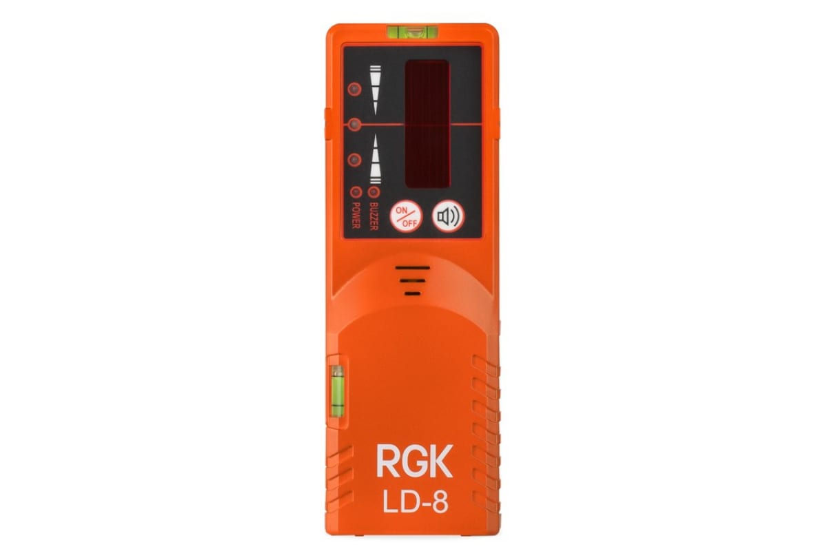Приемник излучения RGK LD-8 увеличивает рабочий диапазон лазерных нивелиров до 50-70 м. Пузырьковый уровень позволяет выравнивать положение прибора относительно горизонта. Корпус соответствует классу защиты IPX4. Есть световая и звуковая индикация, а так же односторонний дисплей.