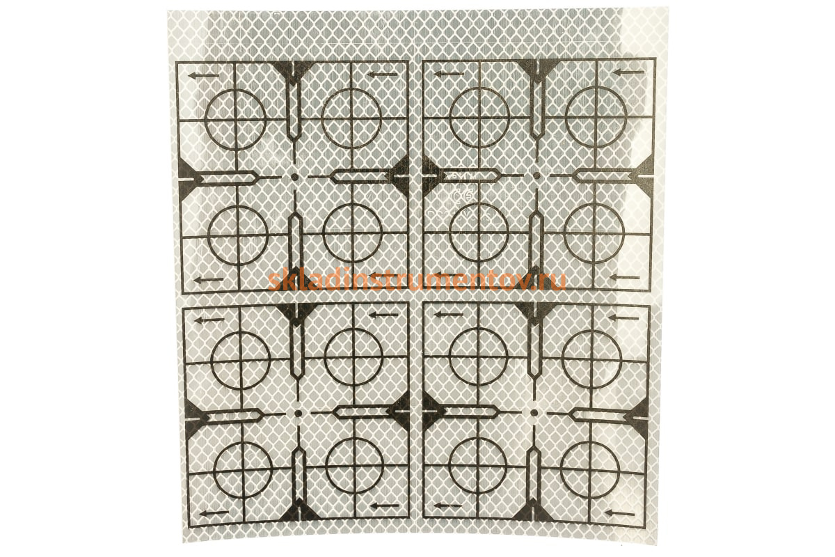 Отражатель пленочный RGK служит для получения точных измерений с помощью электронных тахеометров и лазерных дальномеров. Представляет собой самоклеющую пленку со световозвращающей поверхностью и специальной разметкой.