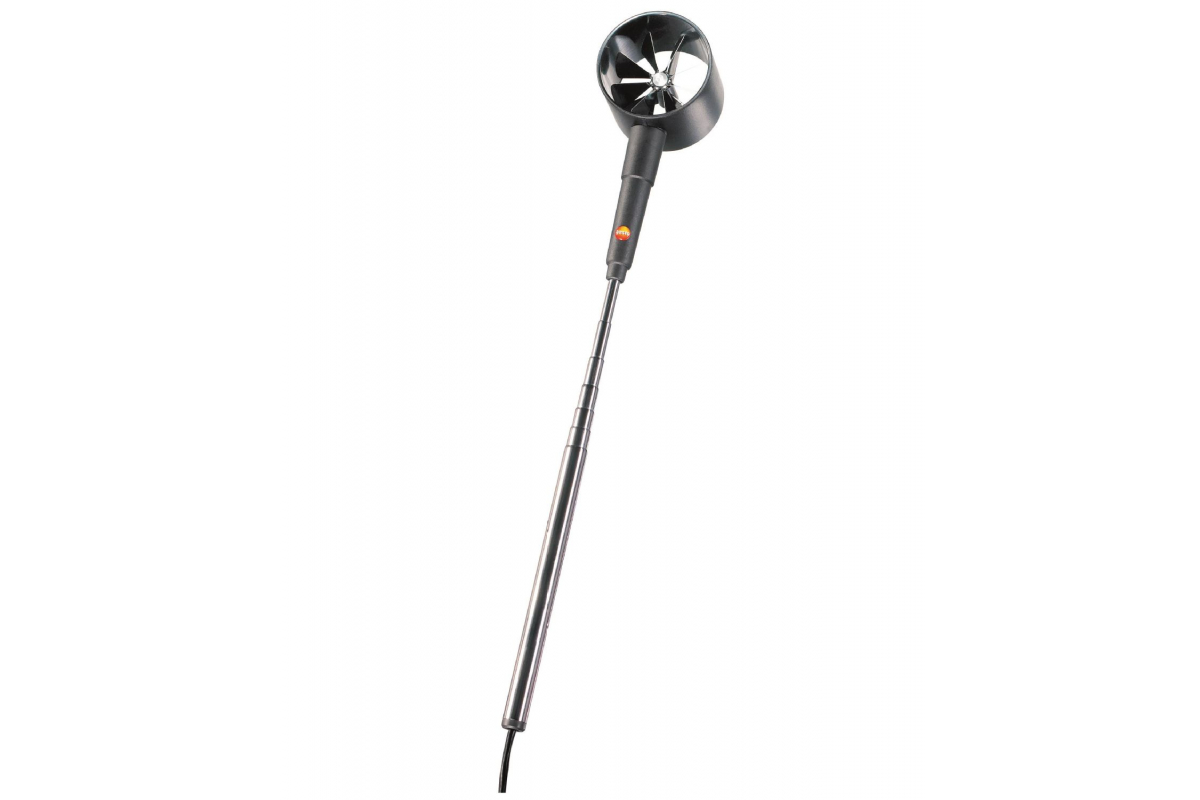 Зонд крыльчатка 60 мм с телескопической рукояткой Testo 0635 9335 предназначен для определения скорости потока и объемного расхода на вентиляционных решетках или отверстиях воздуховодов.