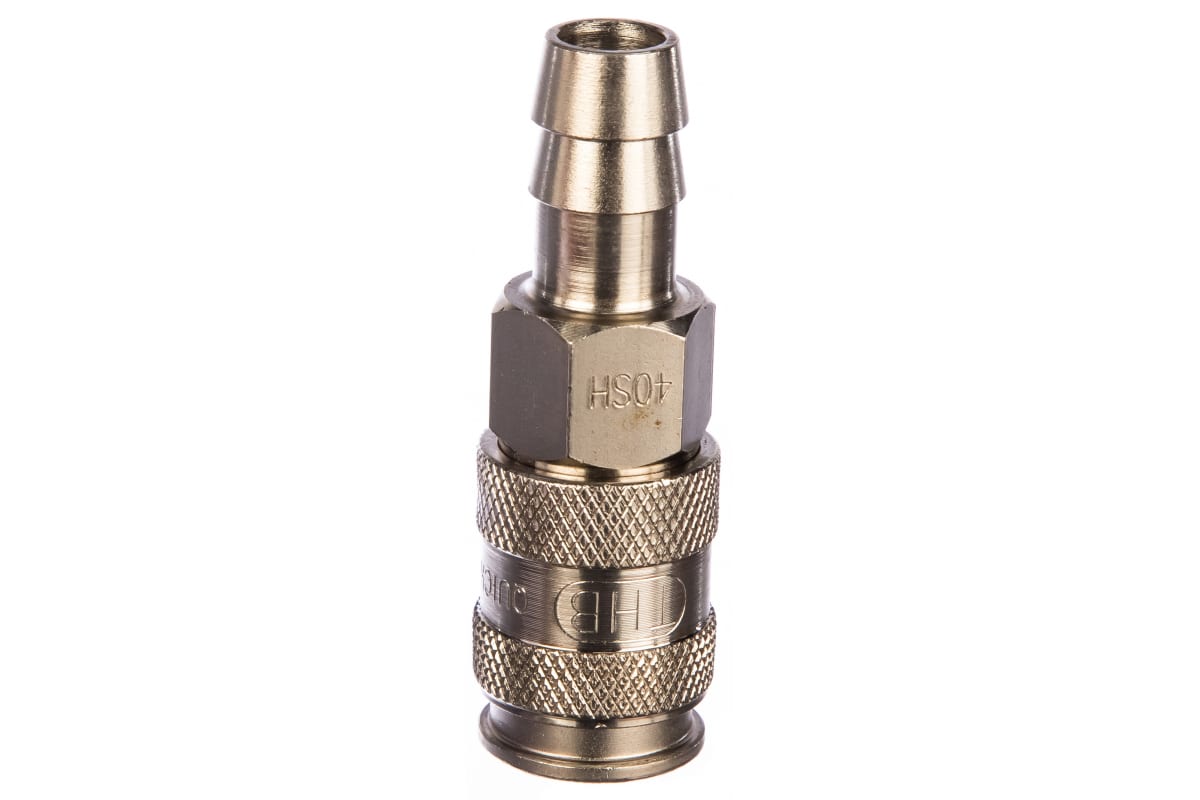 Переходник JTC JTC-D40SHA используется совместно с компрессорным оборудованием для соединения шланга с пневмоинструментом. Крепится к инструменту с помощью соединения рапид, а к шлангу - ёлочкой. Созданная конструкция обладает высокой надежностью и герметичностью.