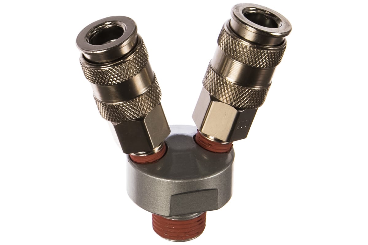 Разветвитель пневматический V-образный WIEDERKRAFT WDK-82MV используется совместно с компрессорным оборудованием для подключения двух пневмоинструментов. Изготовлен из стали. Оснащен двумя разъемами рапид тип "мама". Отдельного внимания заслуживает наличие двух вариантов резьбы входного отверстия диаметрами 1/4"M и 3/8"F.