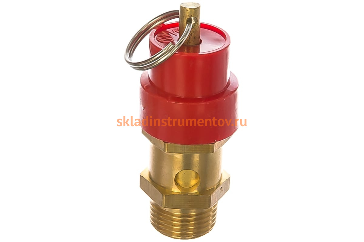 Предохранительный клапан Foxweld AERO 5766 используется для аварийного выпуска воздуха из ресивера компрессора. Для выполнения этой операции потребуется снять колпачок с кольцом.