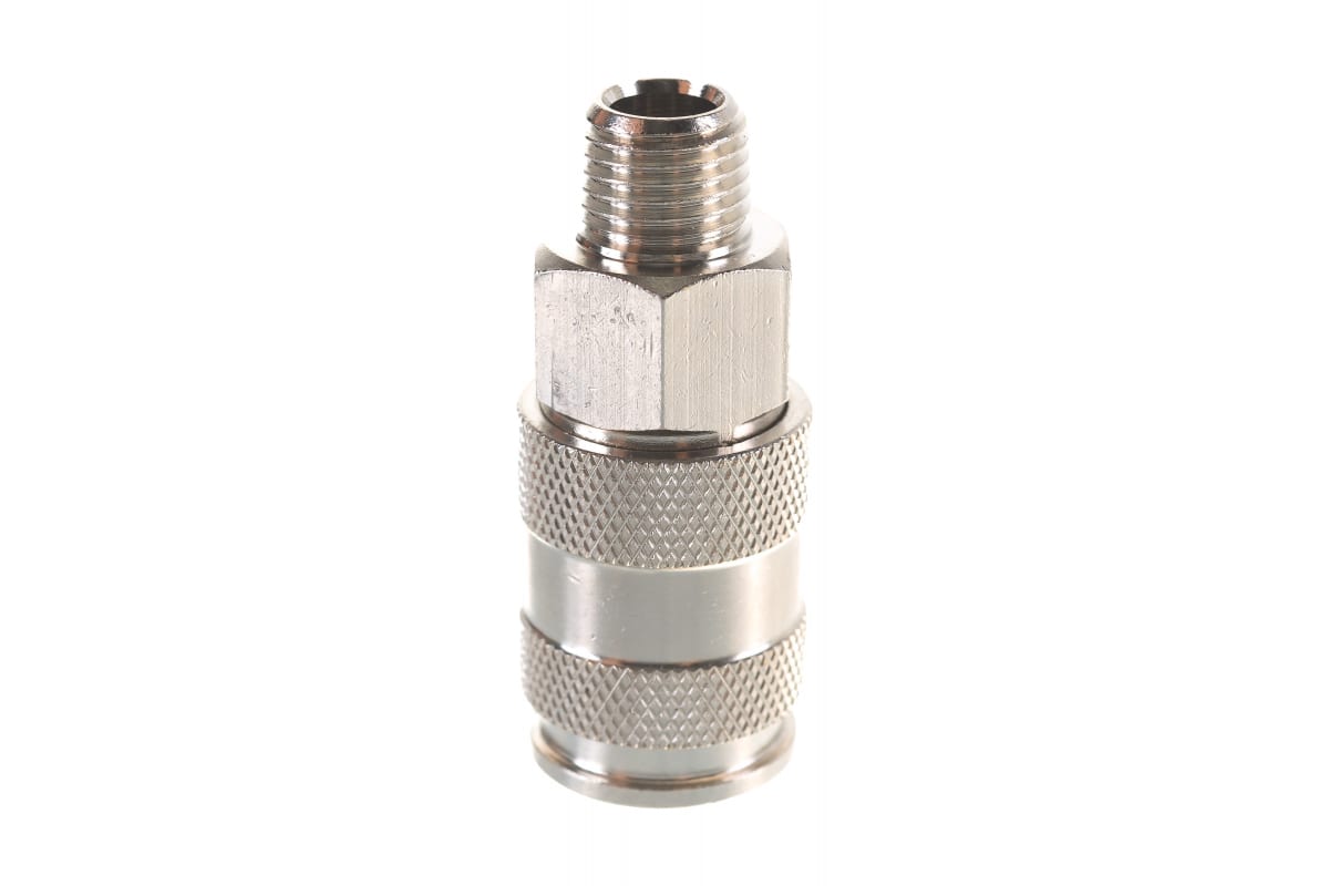 Быстросъемное соединение Jonnesway GM-02AM 49474 используется совместно с компрессорным оборудованием для надежного соединения выходного отверстия компрессора со шлангом, к которому прикрепляется пневмоинструмент. Диаметр наружной резьбы - 1/4".
