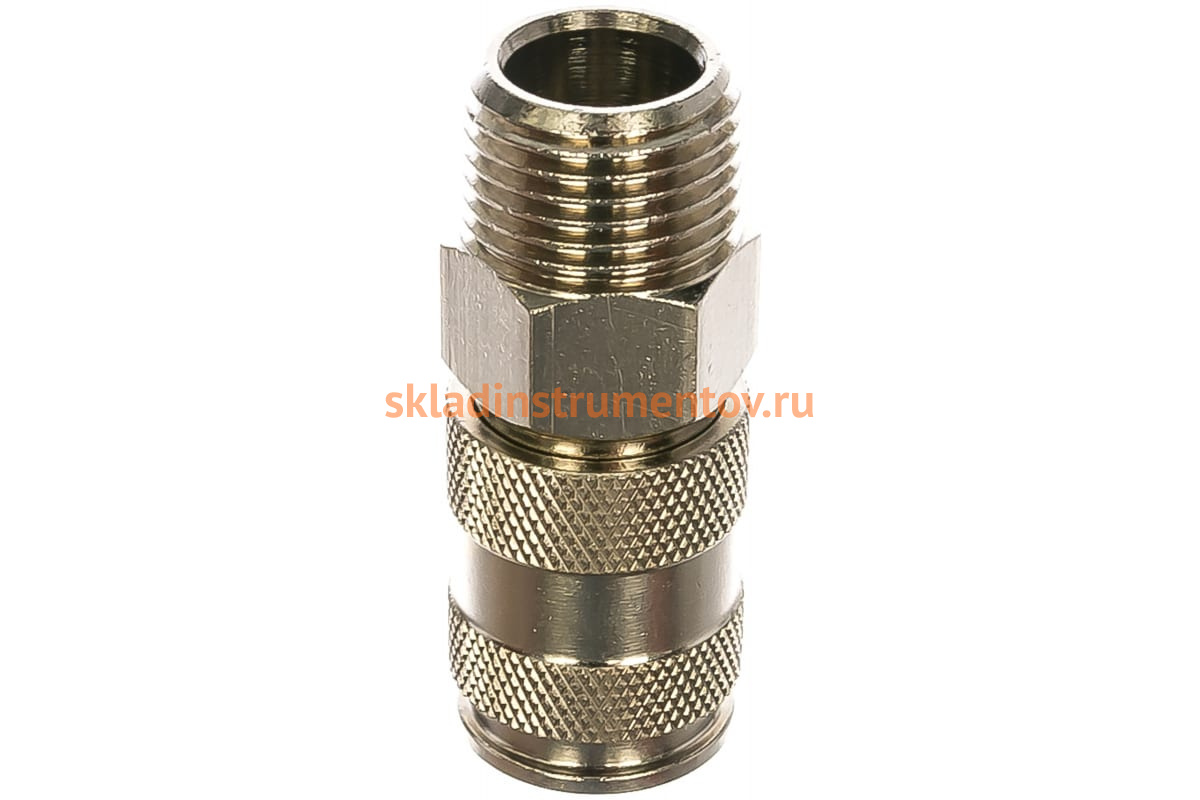 Соединение быстросъемное Jonnesway GM-04AM 49480 применяется для соединения различных частей пневмосистем. С одной стороны фитинг имеет внешнюю резьбу 1/2", с другой быстросъемное соединение - рапид тип "мама". Созданная конструкция обладает высокой надежностью и герметичностью.
