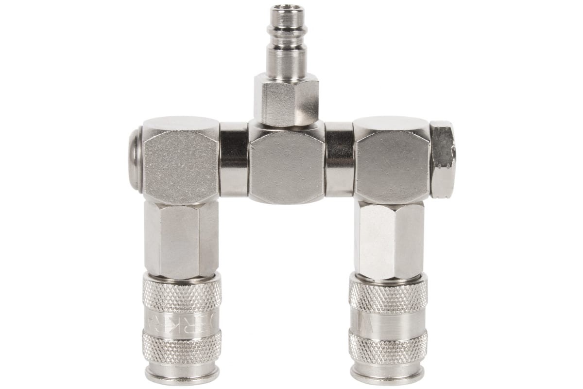 Разветвитель пневматический WIEDERKRAFT WDK-83RLL используется совместно с компрессорным оборудованием для подключения пневмоинструмента. Изготовлен из стали. Оснащен двумя вращающимися разъемами рапид тип "мама". Входное соединение - рапид тип "папа".