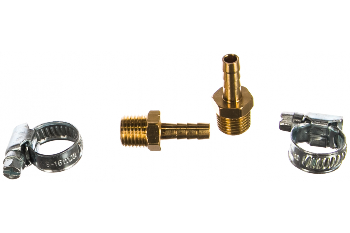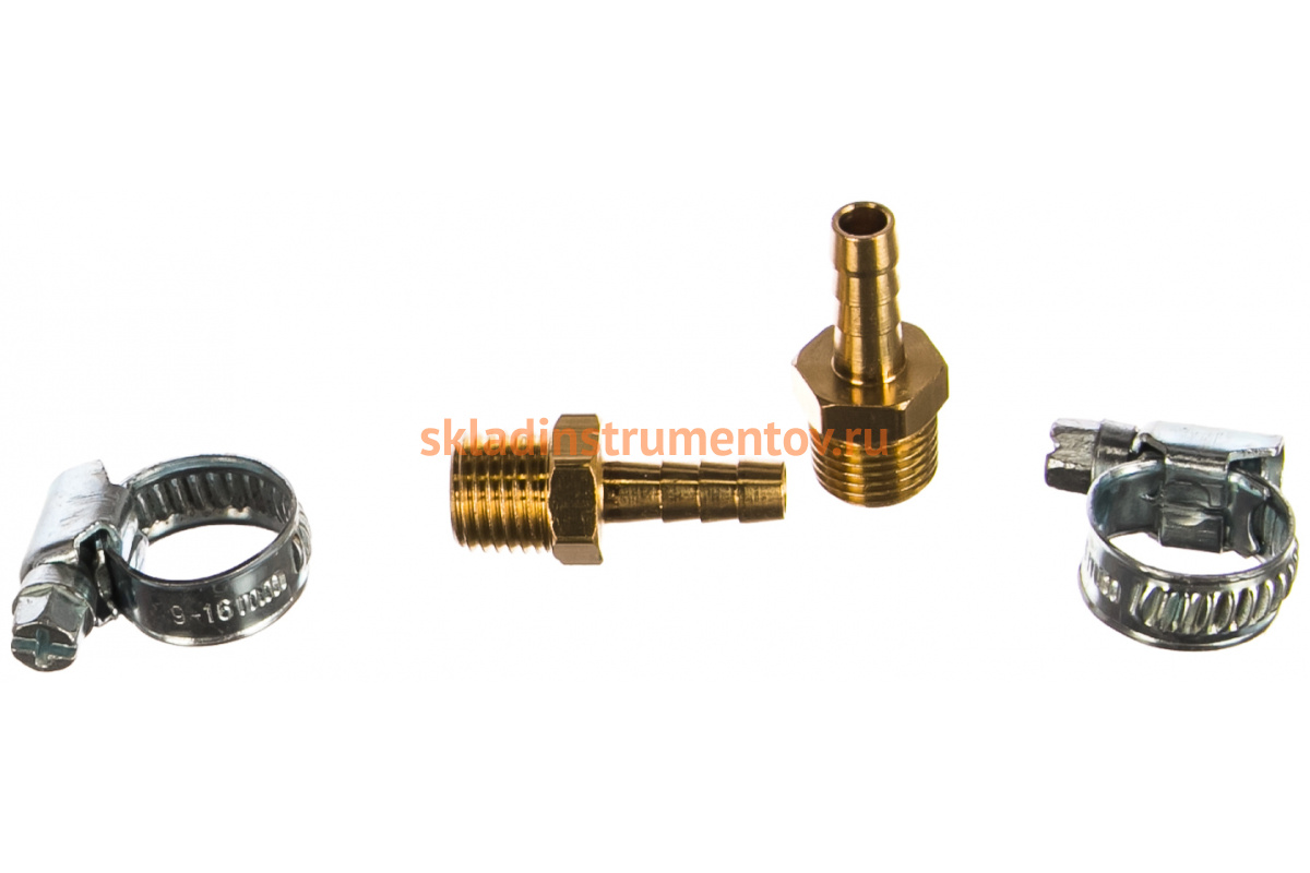 —Штуцер пневматический наружная резьба 1/4- елочка 6 мм, 2 шт. + хомуты ROCKFORCE RF-MH04/04