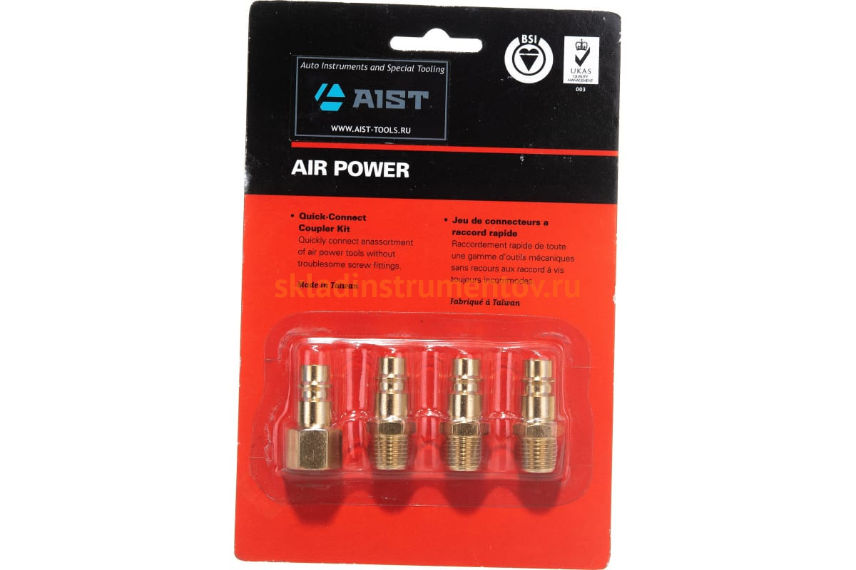 Набор штуцеров AIST 90991201B 00-00009083 представляет собой быстросъемные фитинги изготовленные из меди, которые предусмотрены для соединения пневматического инструмента, компрессорного оборудования и шлангов.