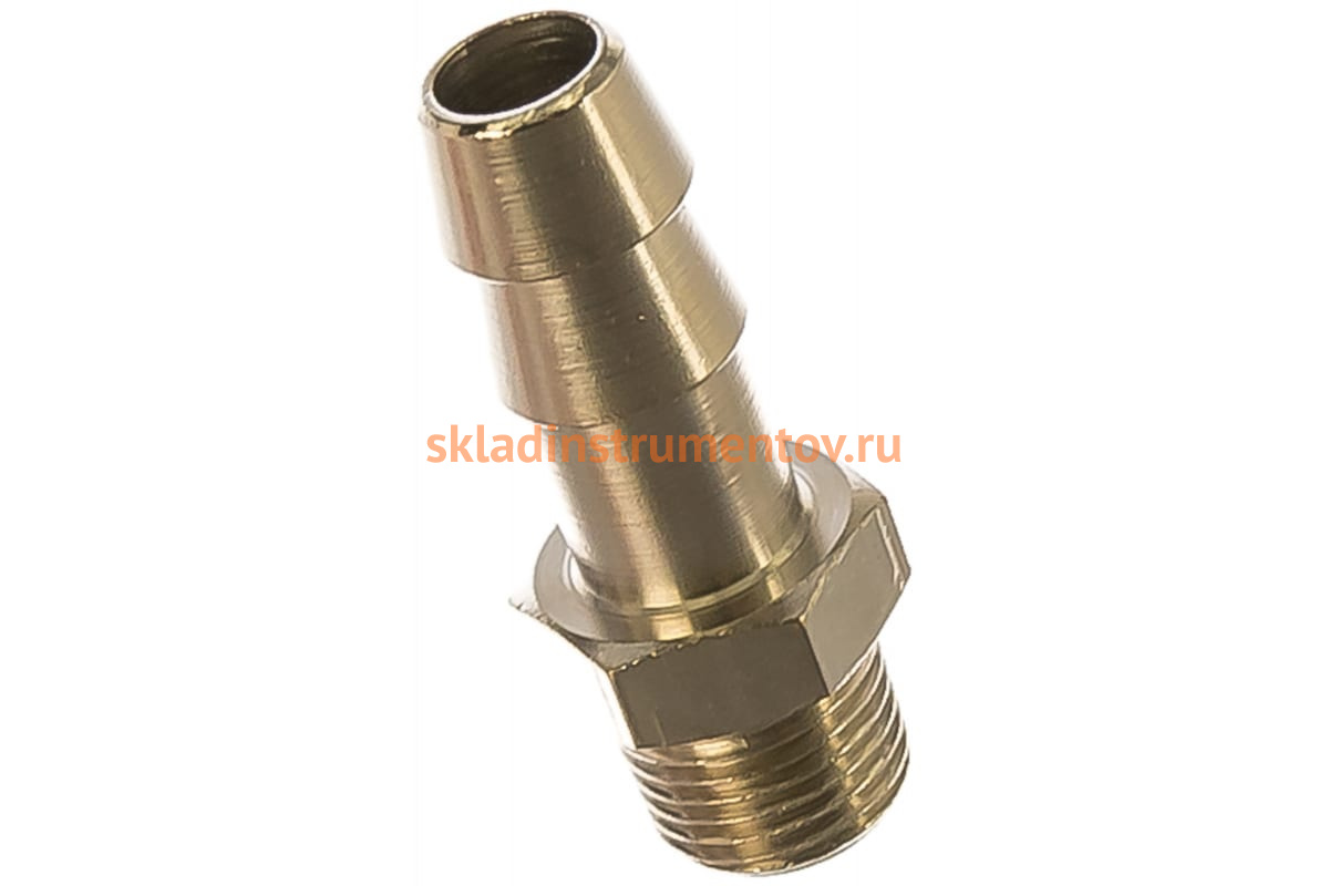 Переходник 1233/3 GAV 38866 используется совместно с компрессорным оборудованием для соединения шланга с пневмоинструментом. Крепится к инструменту с помощью резьбового соединения 1/8" папа, а к шлангу - ёлочкой. Созданная конструкция обладает высокой надежностью и герметичностью.