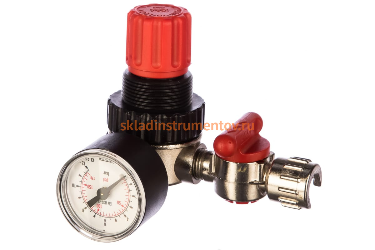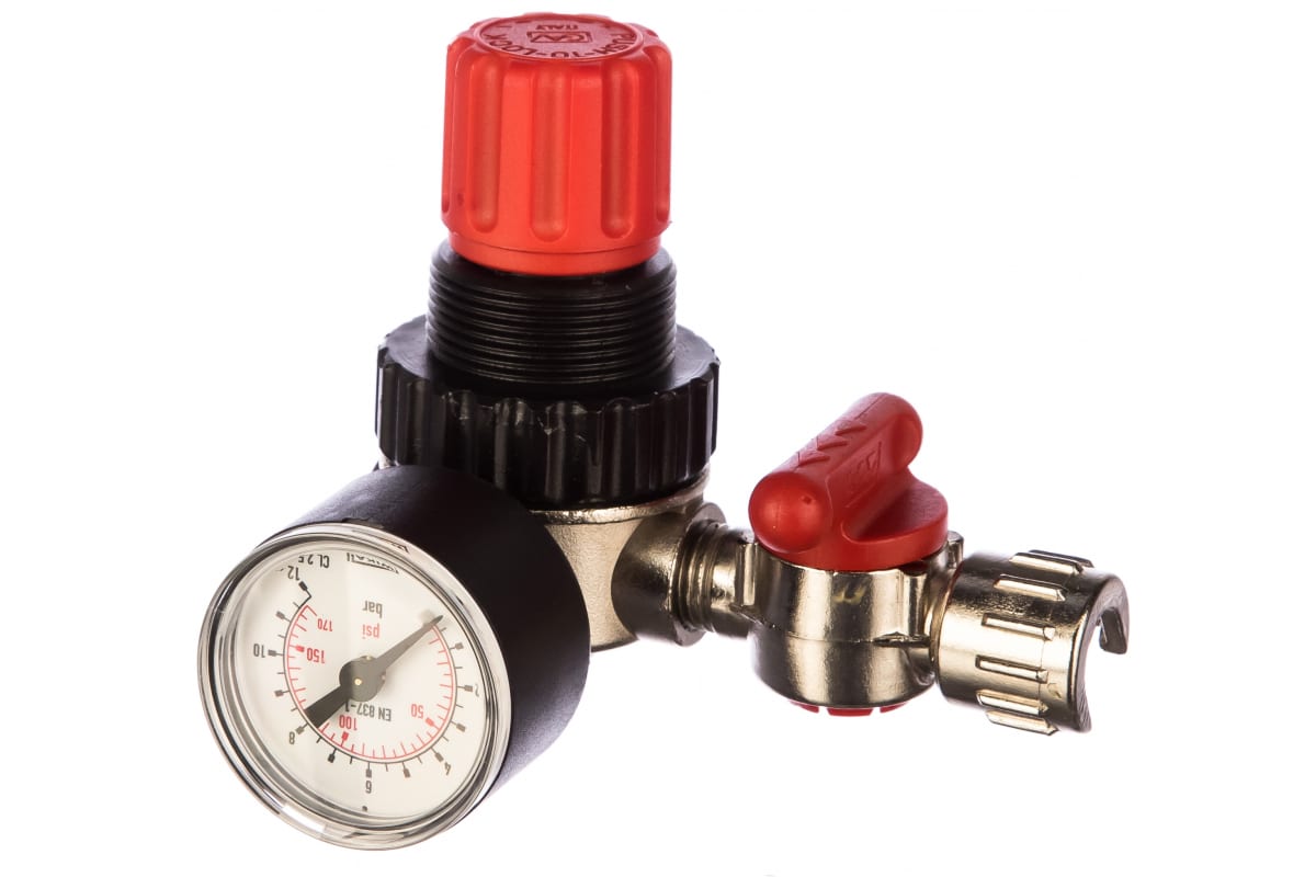 Регулятор давления RP-182 1/4 GAV 13030 предназначен для контроля давления в пневмосистеме. Подключается к магистрали с помощью соединения байонет. Уровень давления регулируется с помощью вентиля и отображается на встроенном манометре.