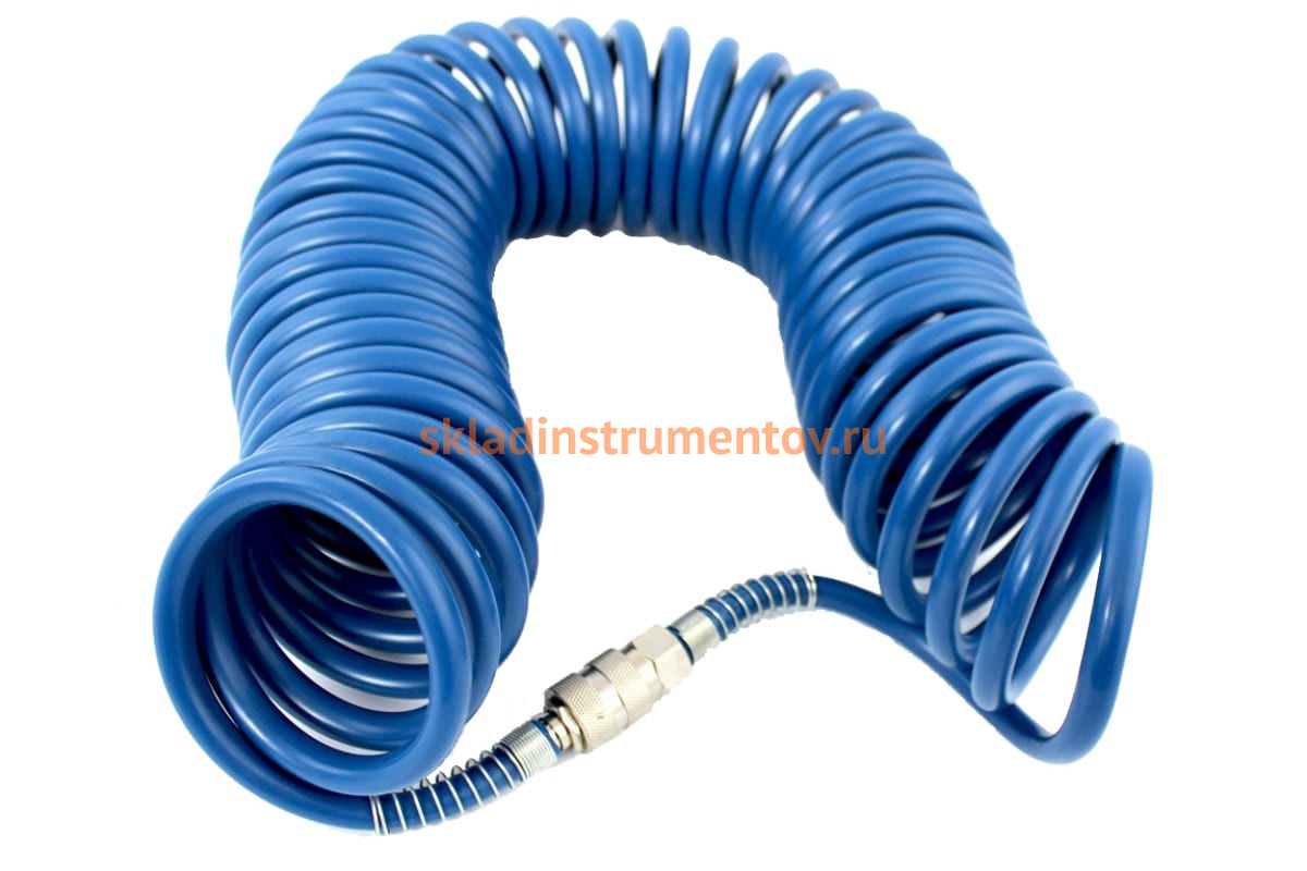 Шланг спиральный синий с быстросъемными соединениями профи (5 м; 5х8 мм; 20 бар) Pegas pneumatic 4910