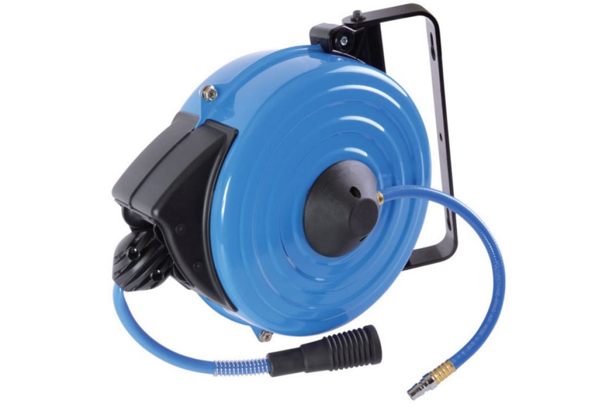 Катушка автоматическая с полиуретановым шлангом высокого давления (8х12 мм, 15 м, резьба 1/4", Japan) KING TONY 79910-15 используется для организации подачи сжатого воздуха от компрессора к пневмоинструменту. Вес модели составляет 6.5 кг. Материалом шланга служит прочный и устойчивый к износу полиуретан.