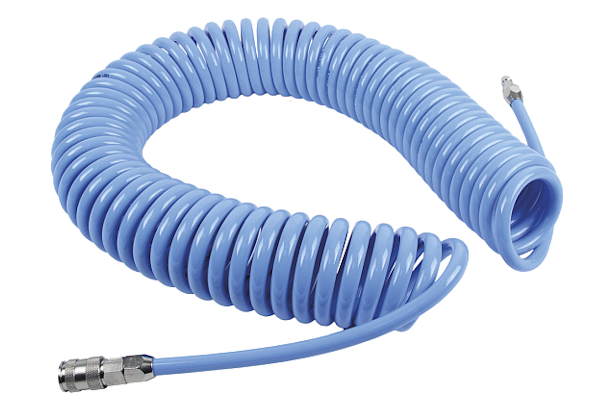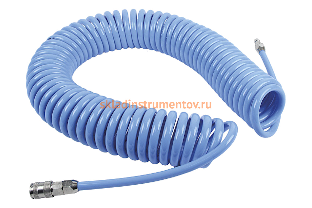 Шланг воздушный спиральный AIST 00-00009034 применяется для соединения воздушно-компрессорного оборудования и пневматических инструментов. Шланг изготовлен из полиуретана. Рабочая температура от -20 до +70°С. Шланг оснащен быстроразъемными фитингами европейского типа.